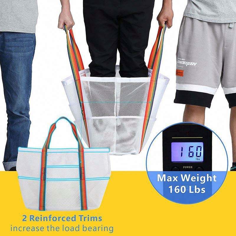 Bolsa de Playa de Malla Portátil con Múltiples Bolsillos, para Viajes de Verano, de un Solo Hombro