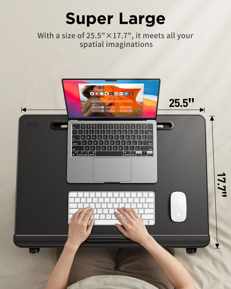 Mesa de cama portátil de cuero de varias posiciones con altura ajustable y soporte de libros plegable para leer y estudiar
