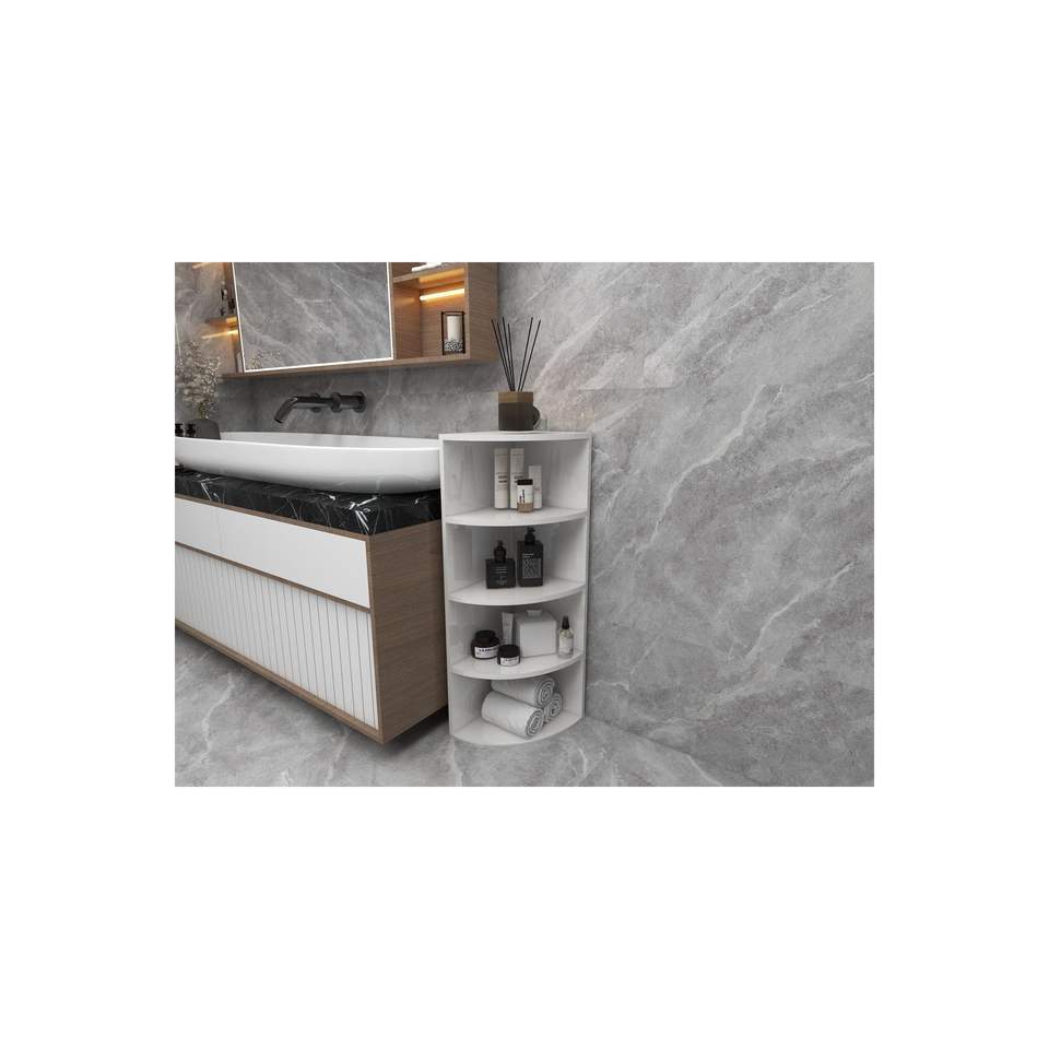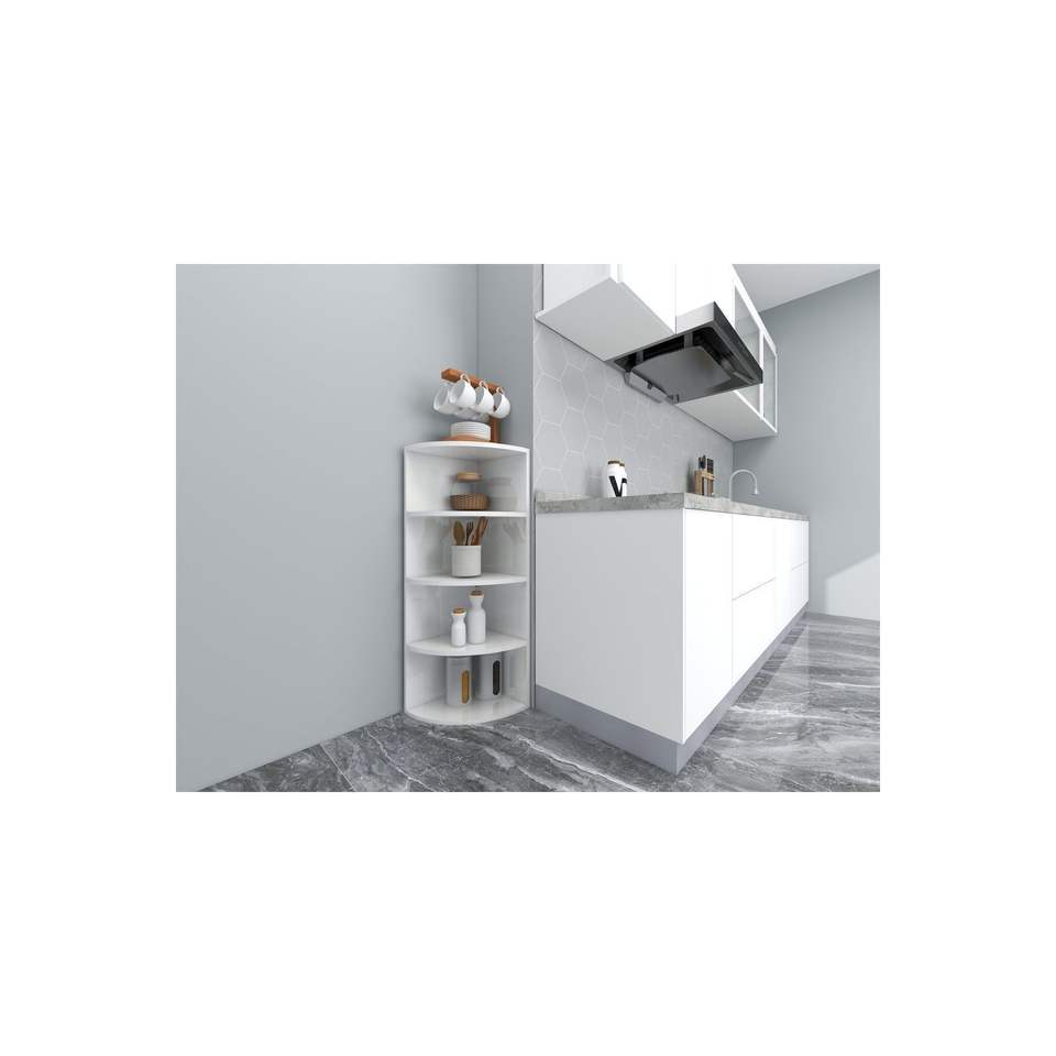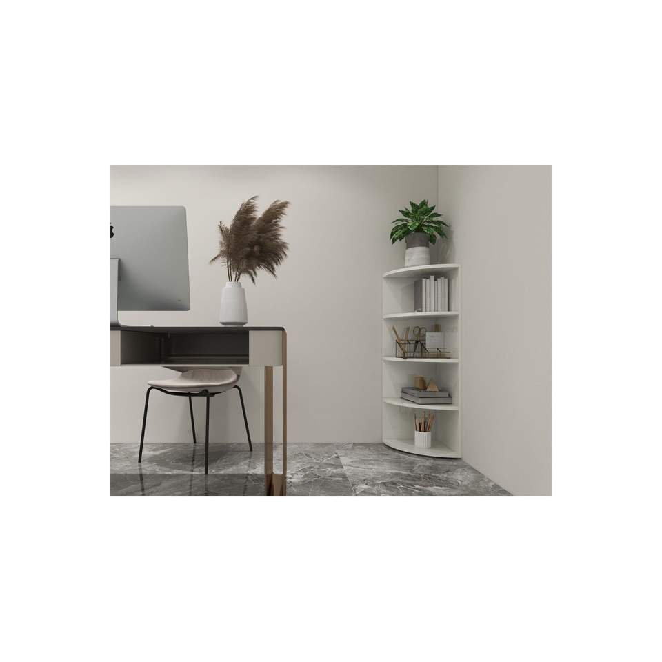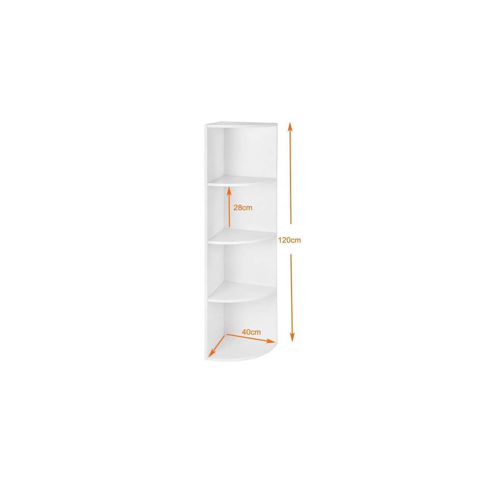 Estantería Esquinera Multiusos y Librería de Aglomerado Blanco, Diseño Escandinavo, Cuatro Niveles, Desmontable, Solución de Almacenamiento Versátil