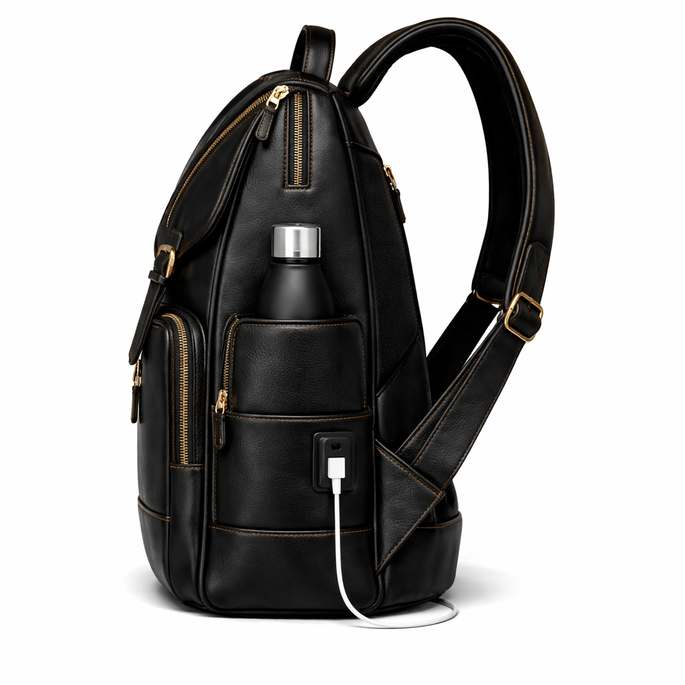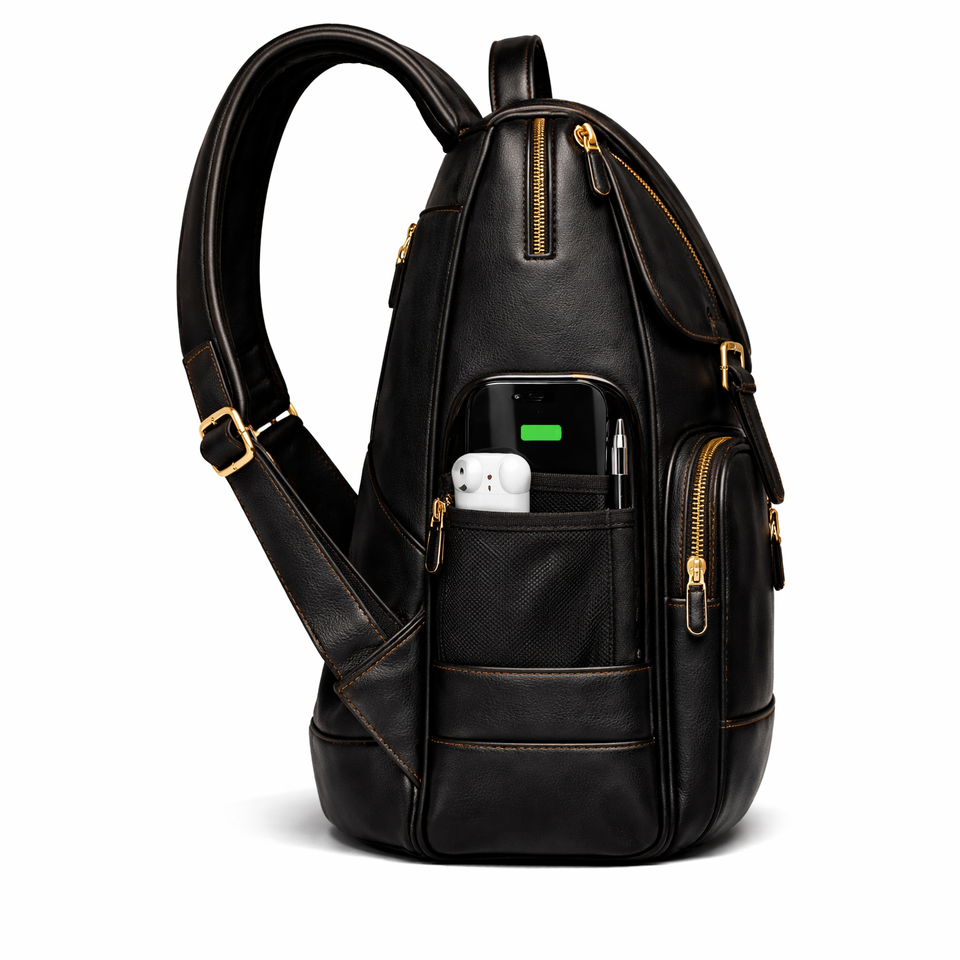 Mochila de Cuero Multiusos para la Escuela, Oficina y Viajes con Compartimentos Organizados y Material Resistente