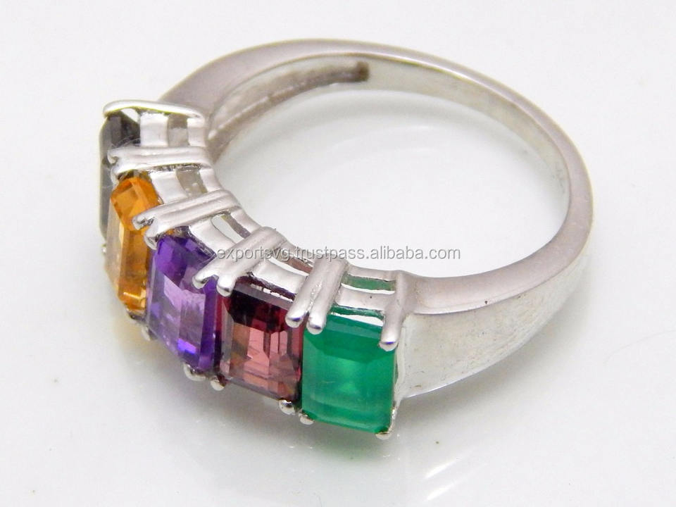 Anillo de Boda Clásico de Plata de Ley 925 con Gemas de Cuarzo Multicolor para Mujer