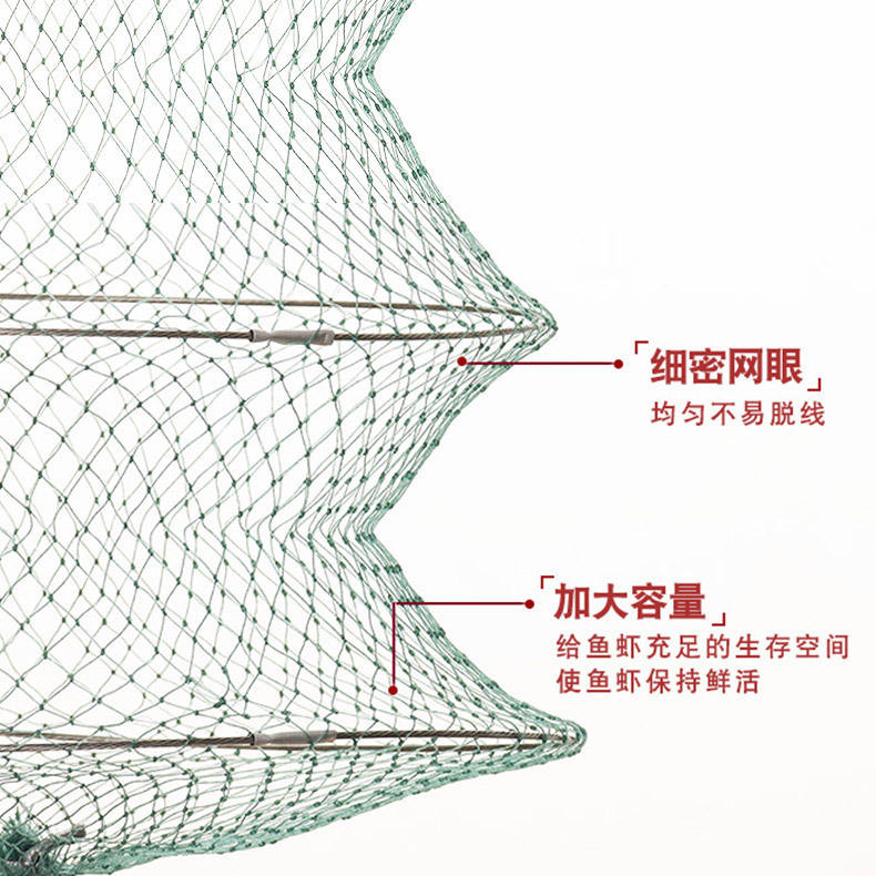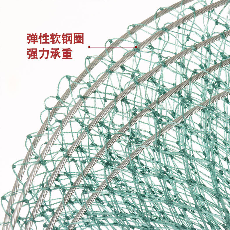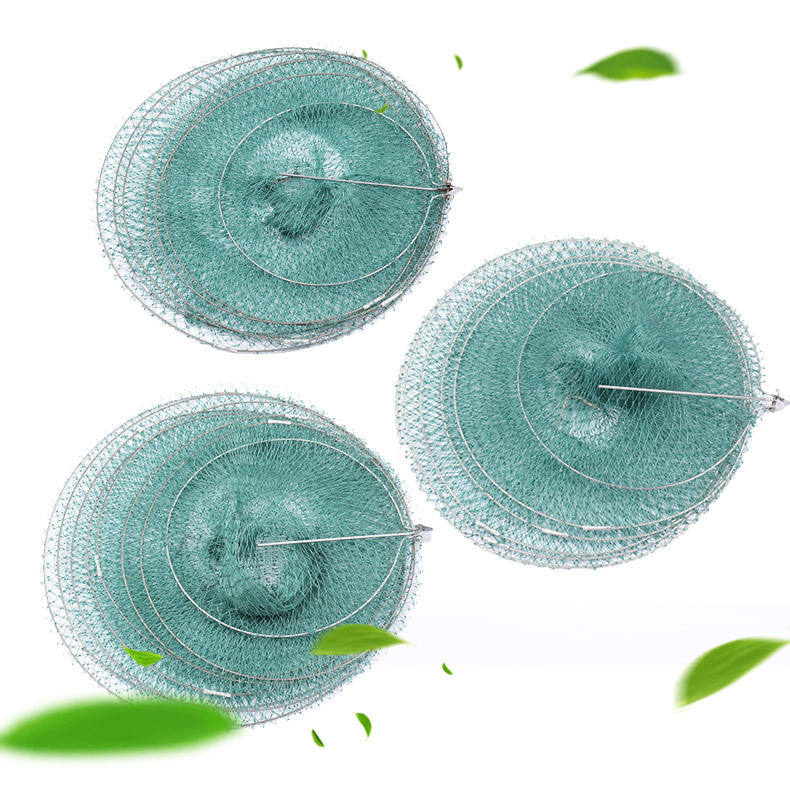 Cesta de pesca de acero inoxidable con anillos múltiples, plegable, con hilo de goma verde, red de pesca de agua dulce, equipo de pesca de fondo