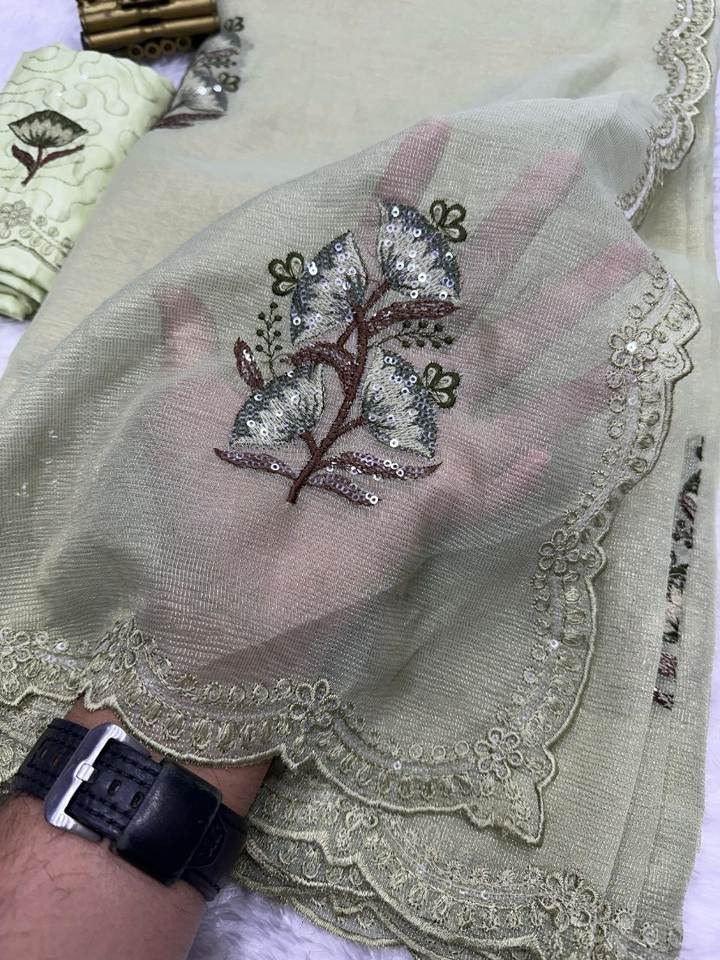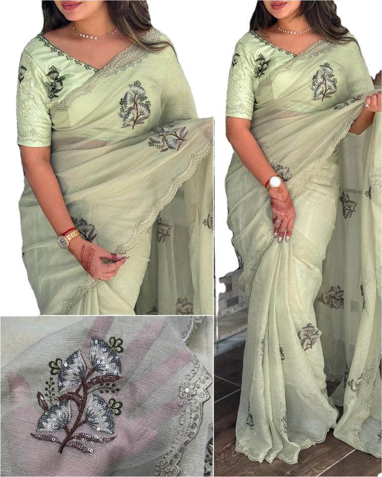 Multi secuencia y bordado corte borde trabajo playa fiesta y días casuales desgaste tela de seda de Organza pura Sari de lujo para mujeres