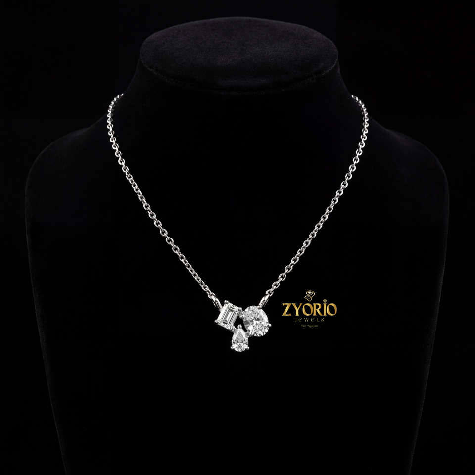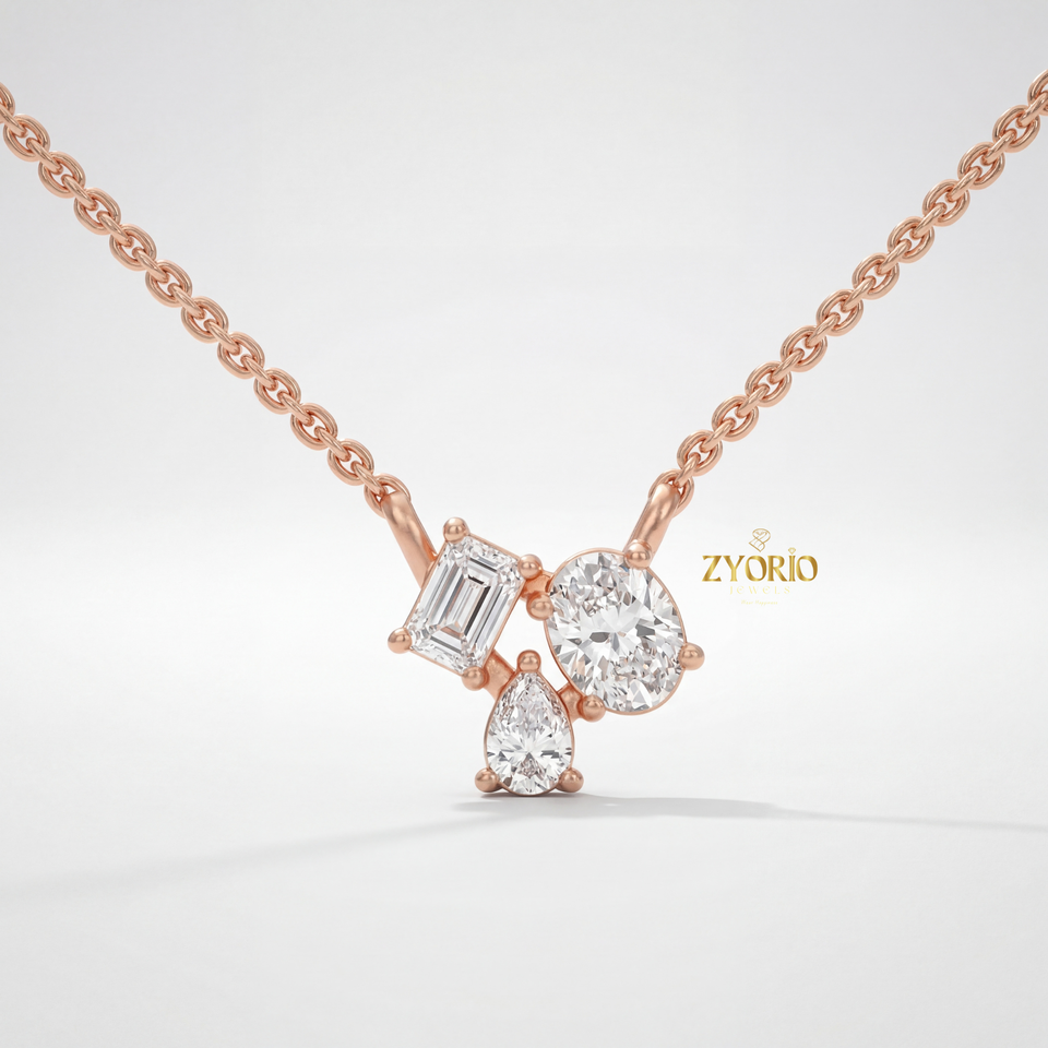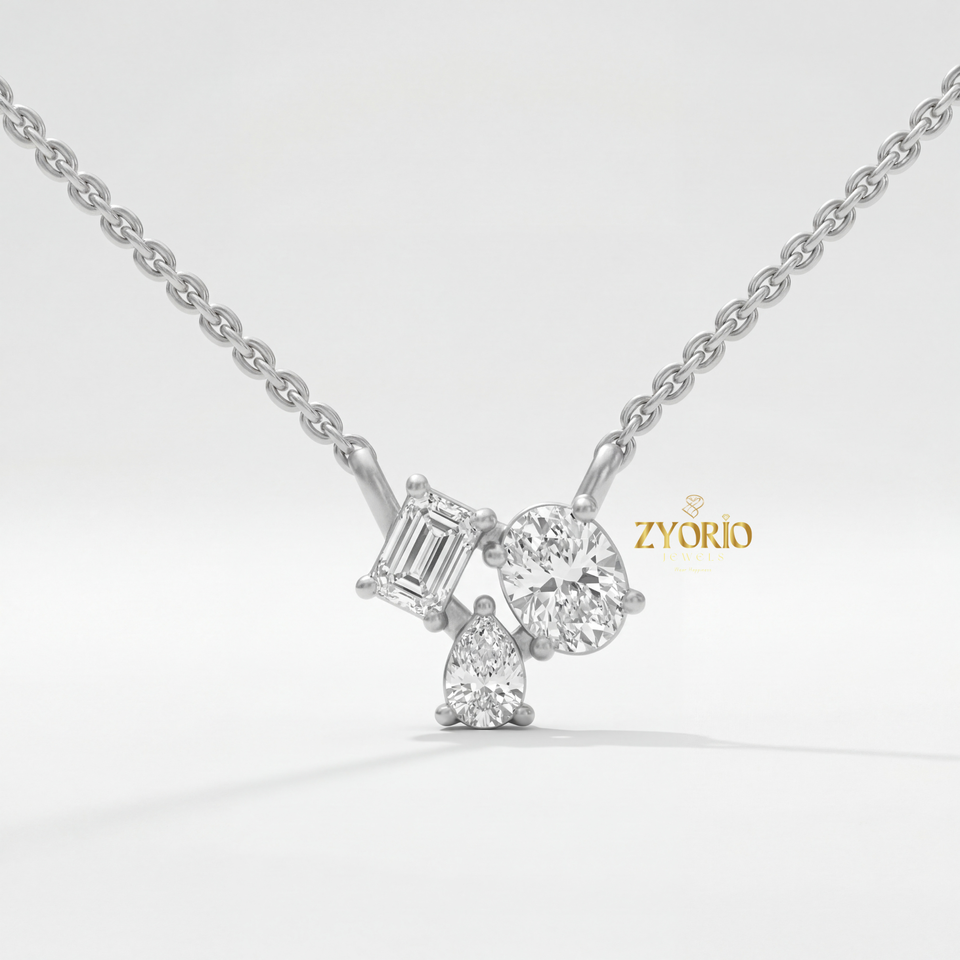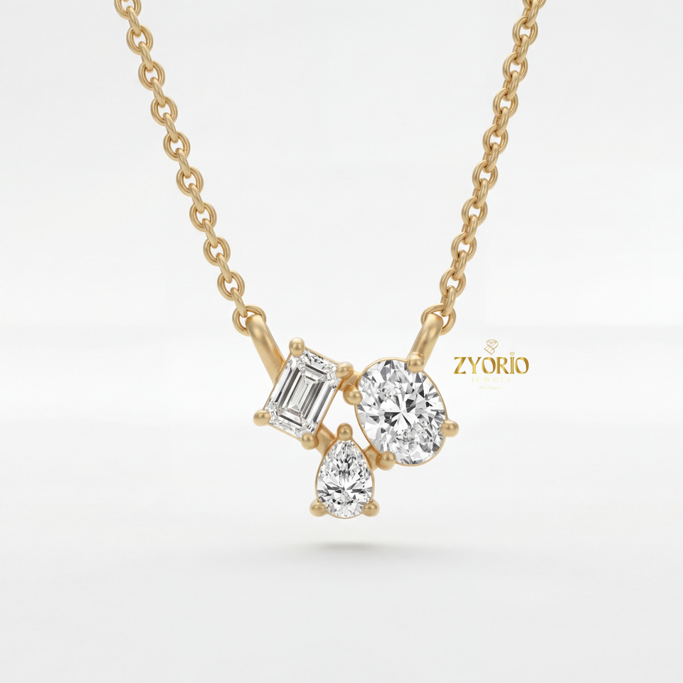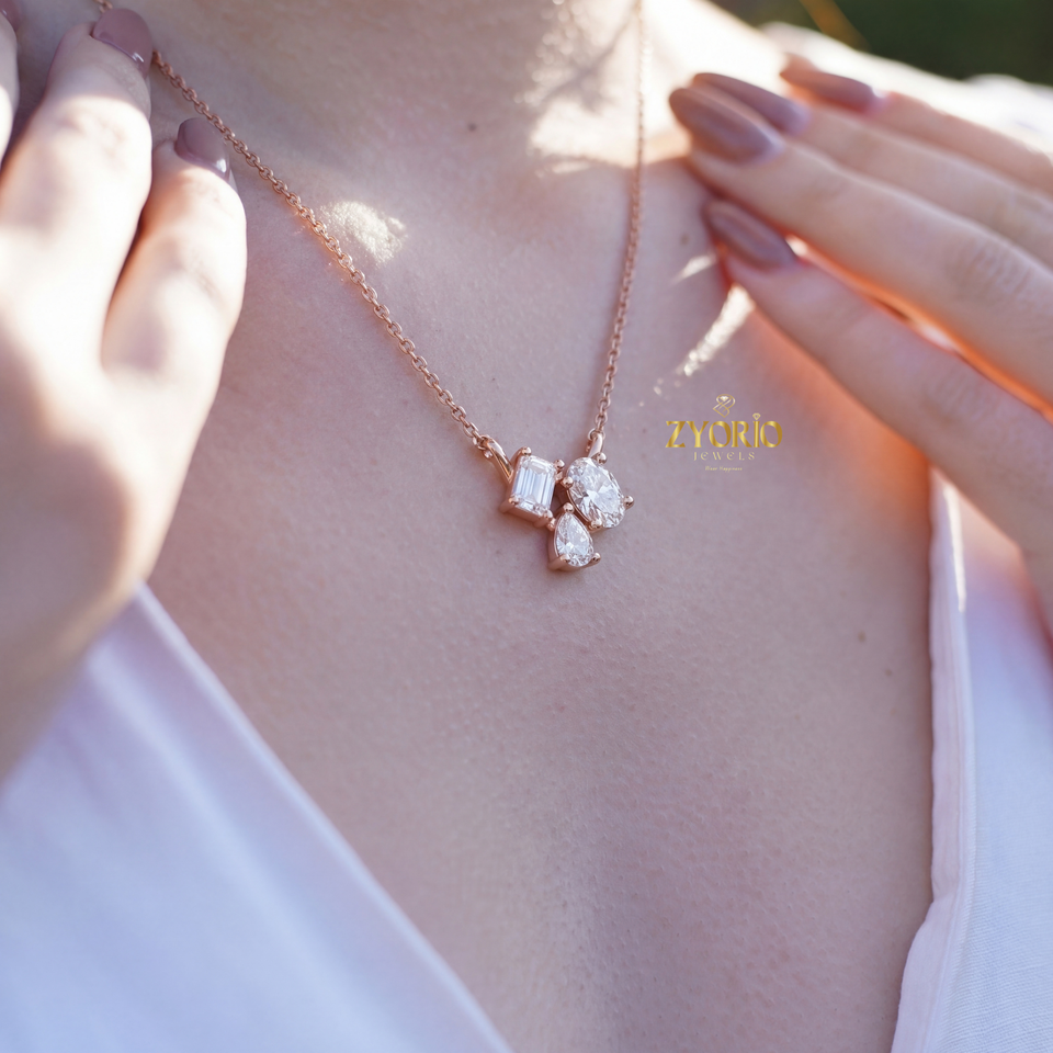 Collar con Colgante de Diamante Cultivado en Laboratorio con Corte Esmeralda Multiforma, Plata de Ley 925 Chapada en Oro, Diseño de Lujo para Mujer, para Bodas y Fiestas