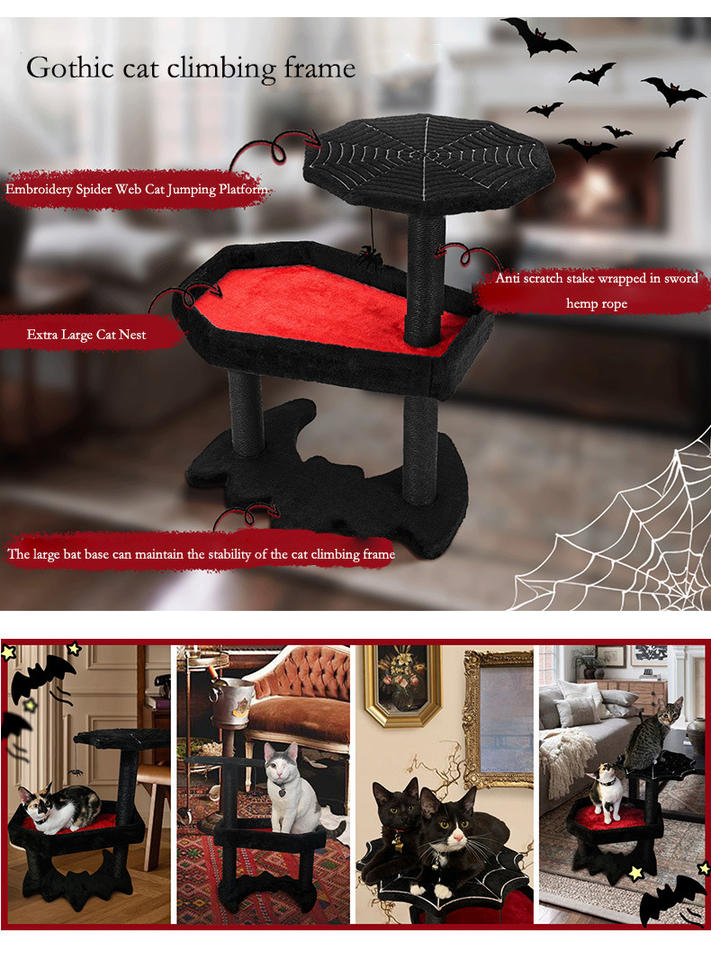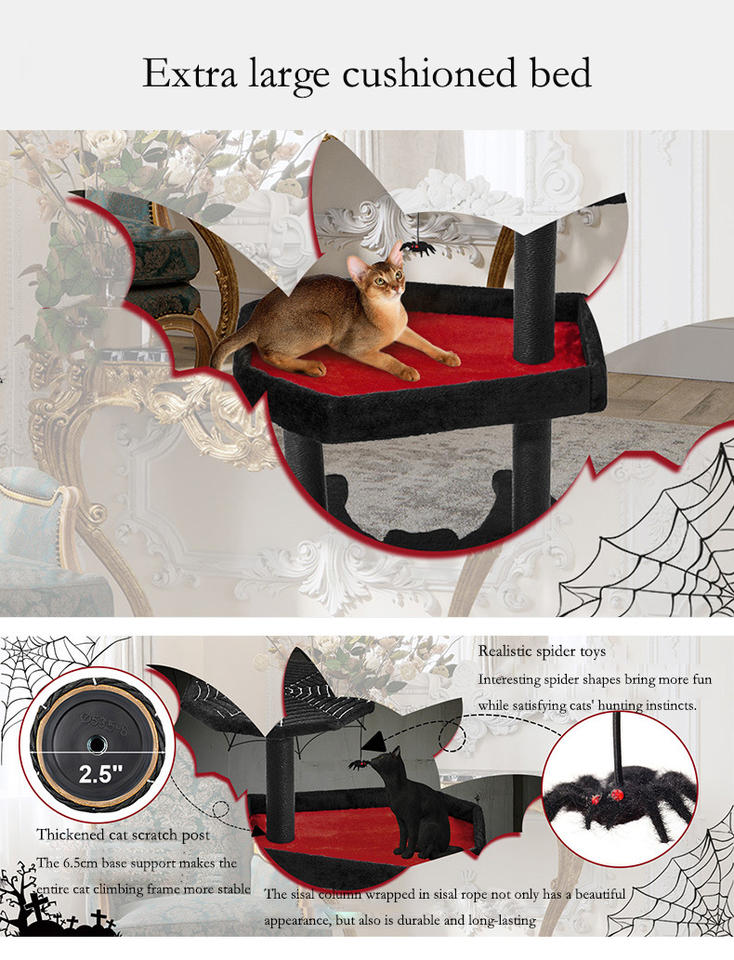 Árbol para Gatos de Halloween de Varios Tamaños, con Cubierta de Felpa Suave, Rascador de Sisal y Hamaca