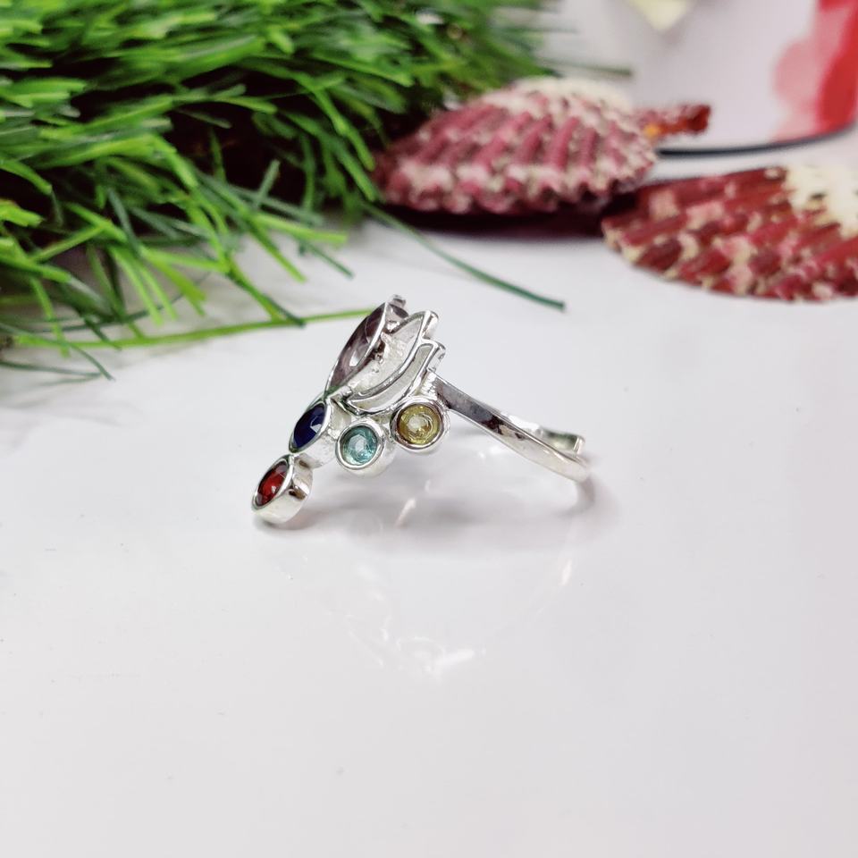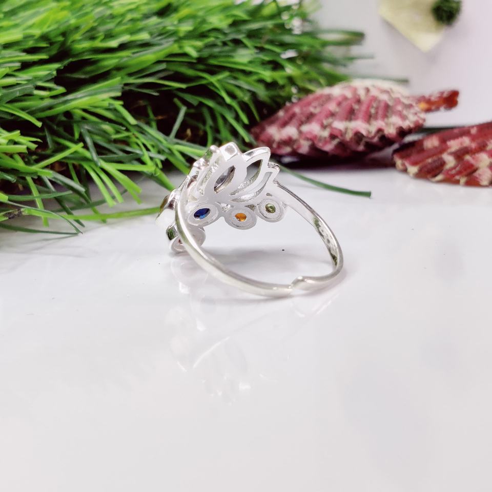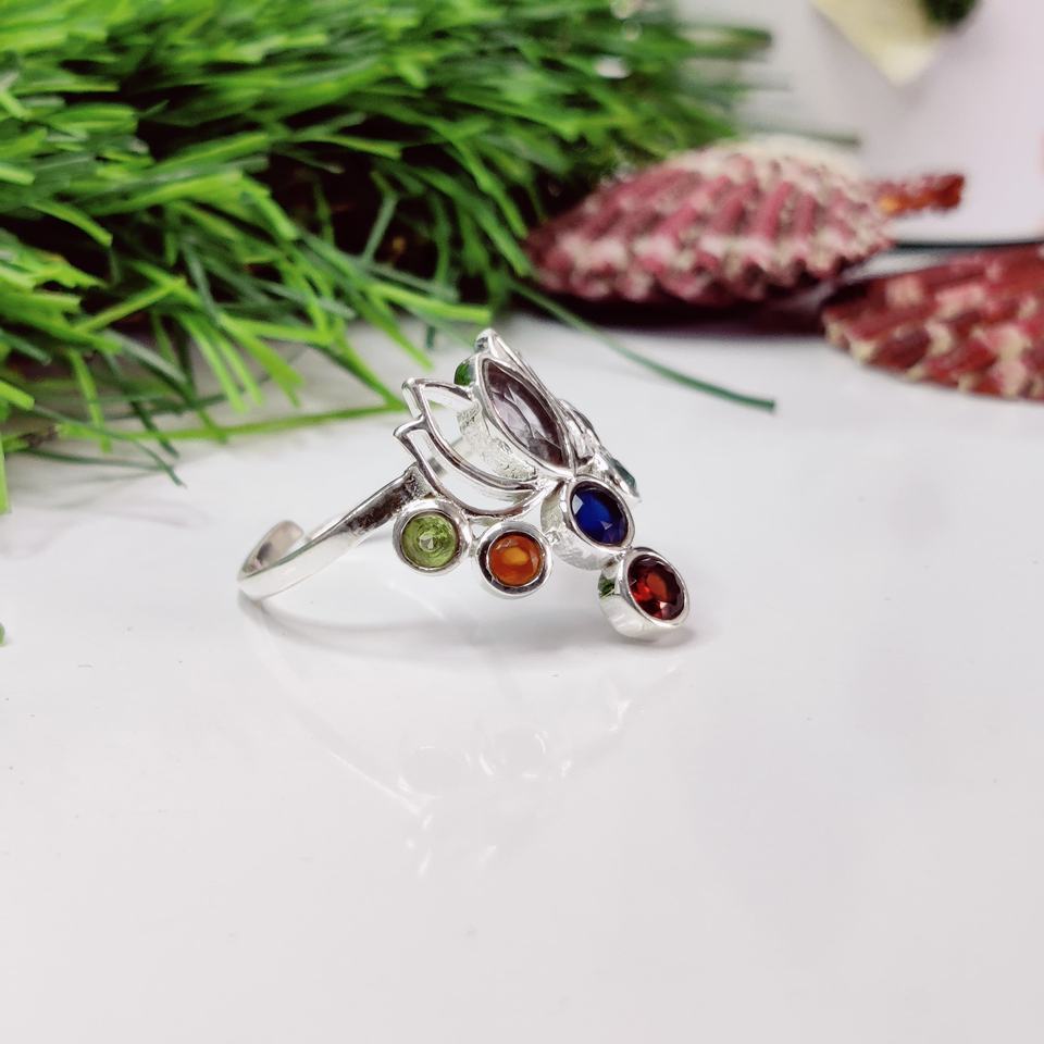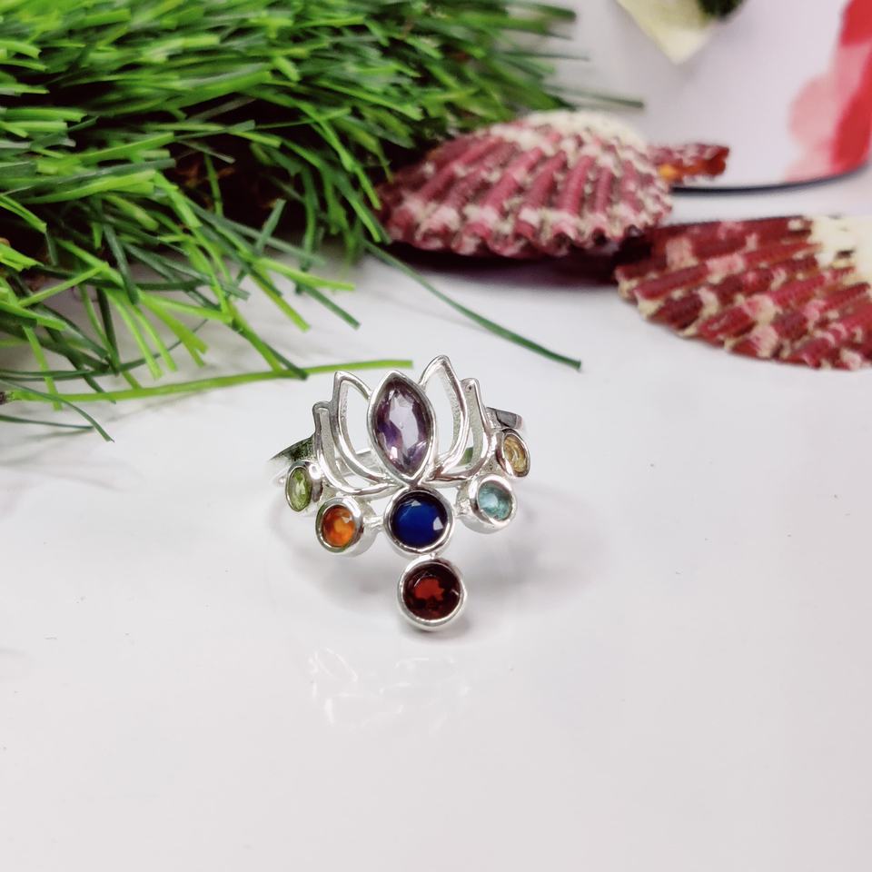 Anillo de Chakra de piedra múltiple Anillo de estilo de chakra de loto Anillo de loto de siete piedras