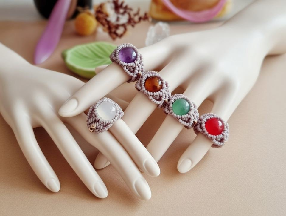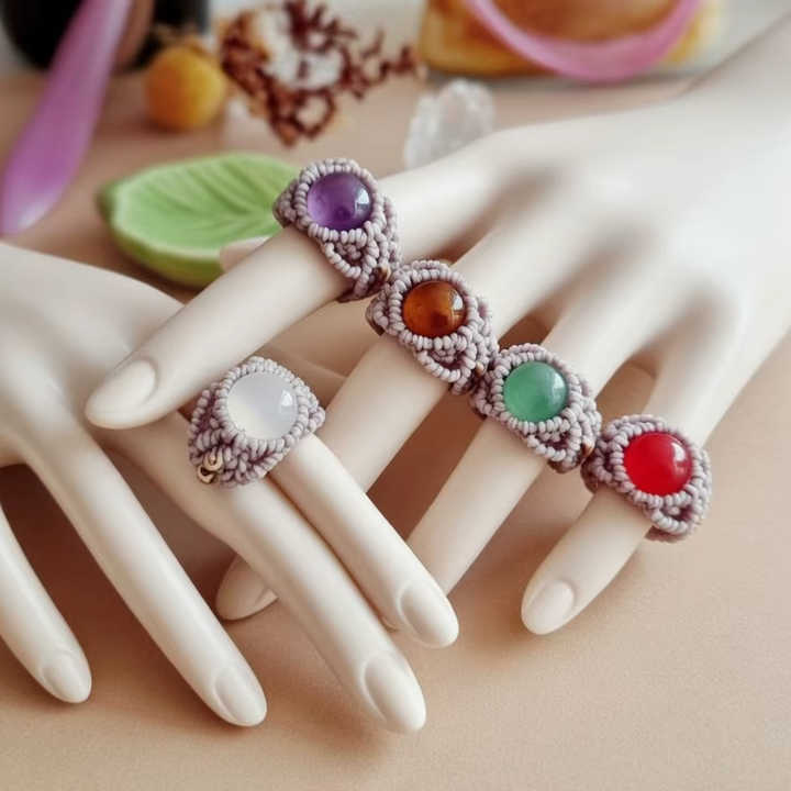 Colección de Anillos de Macramé con Múltiples Piedras - Joyería Náutica de Cristales Curativos al por Mayor, Certificados por IGI | CREACIONES HARI OM