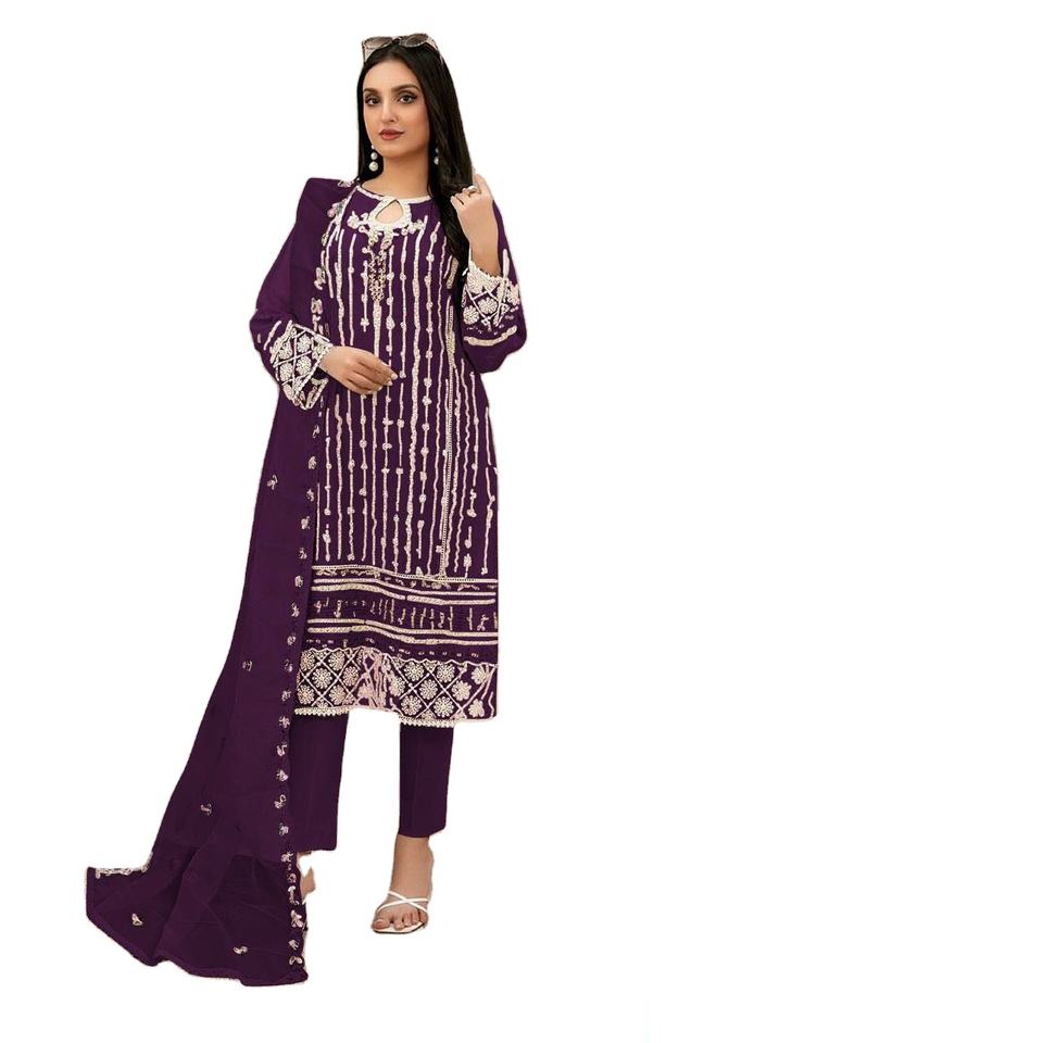 Multi Thread & Zari Work Faux Georgette tela precioso Color brillante moda paquistaní Anarkali Salwar Kameez para mujeres o niñas