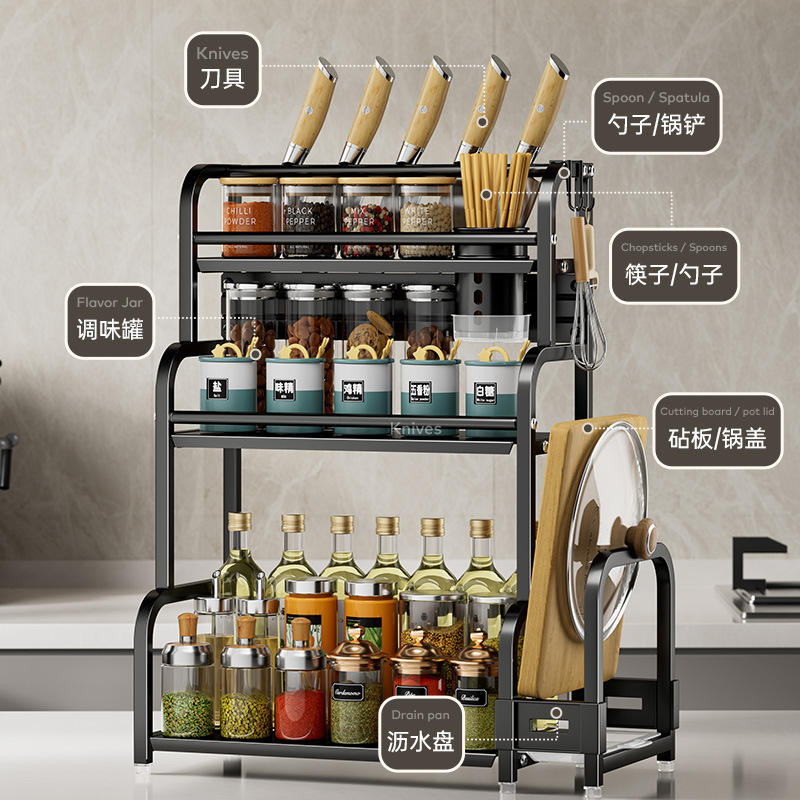 Estante de Especias de Cocina de Varios Niveles, Organizador de Acero Inoxidable para Encimera con Bandeja de Drenaje para Almacenamiento en la Cocina