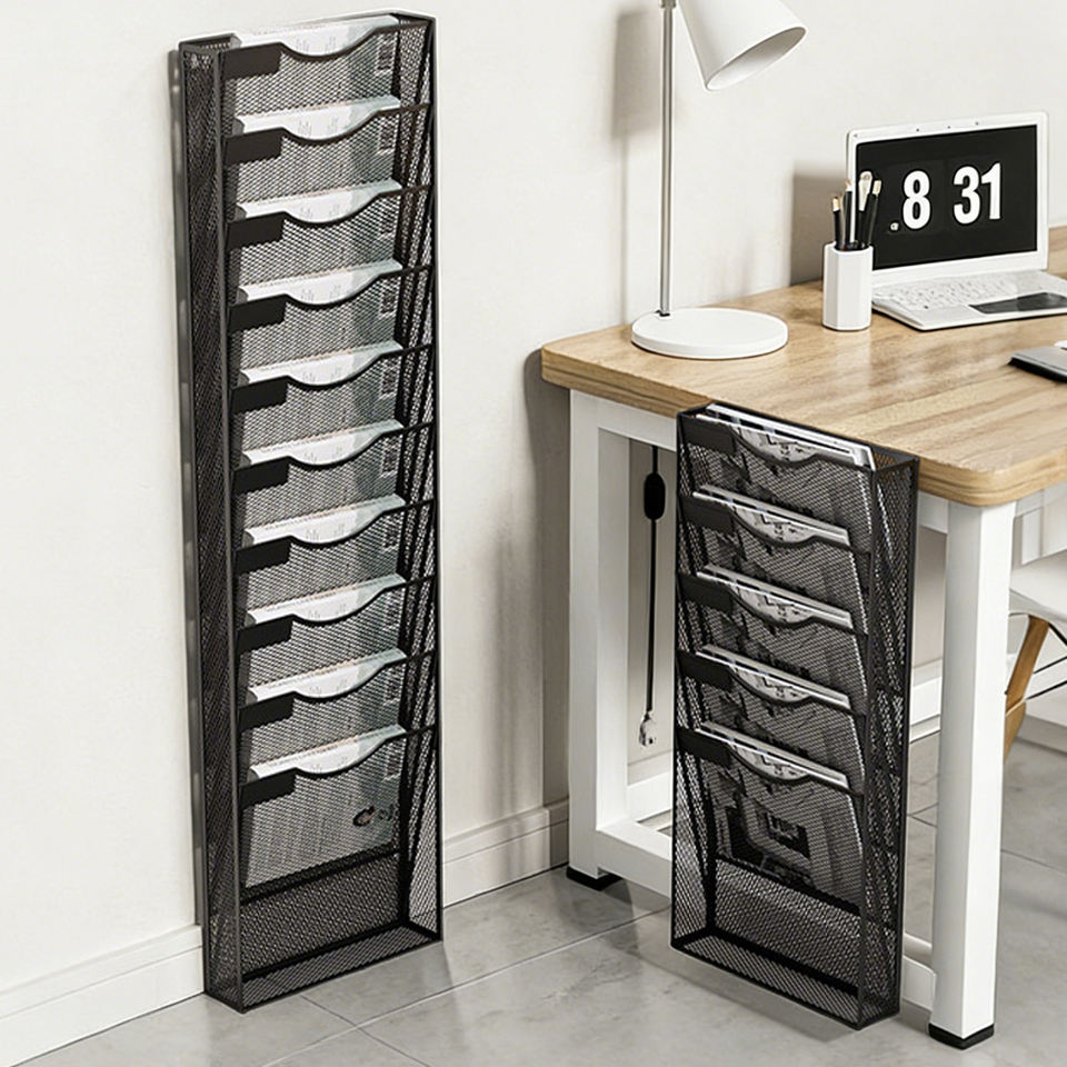 Organizador de Archivos Metálico de Múltiples Niveles para Montar en la Pared, Soporte Vertical para Archivos, para Oficina o Aula