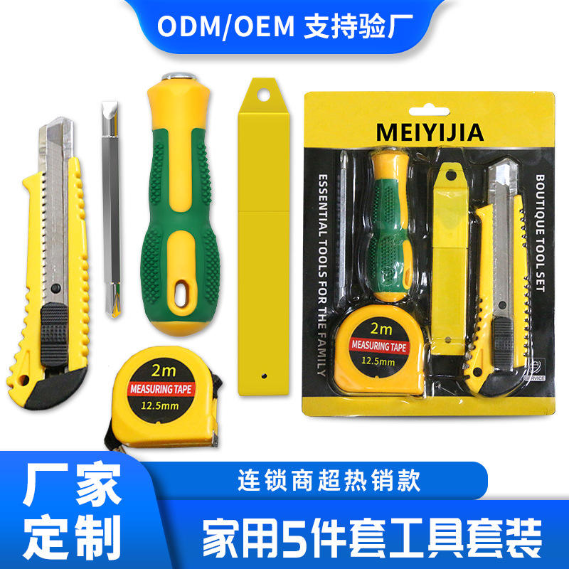 Juego de Herramientas Multiusos de 5 Piezas con Cinta Métrica, Cuchillo Multiusos, Destornillador, Cuchillas Intercambiables, Kit de Reparación DIY