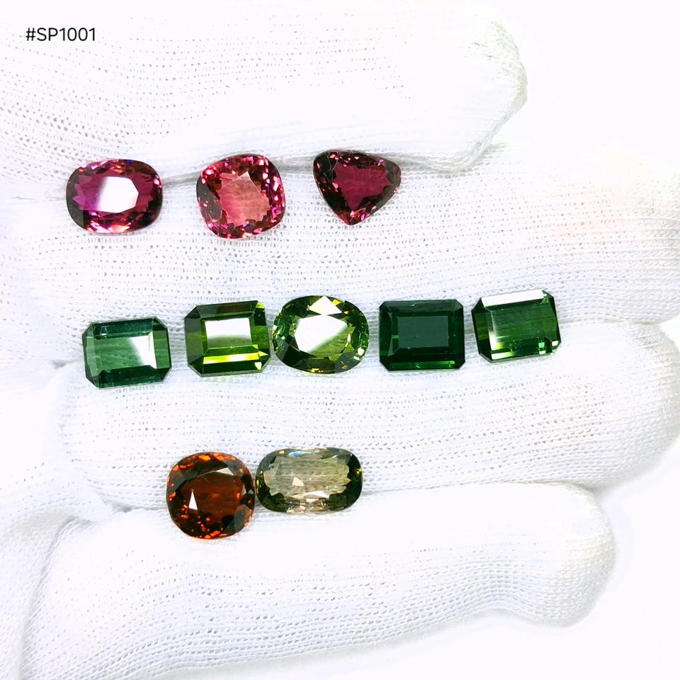 Juego de 10 turmalinas multicolor de 41.35 ct, grado 3A, formas mixtas, gemas sueltas en tonos verde, rosa, marrón y naranja para la elaboración de conjuntos de joyería.