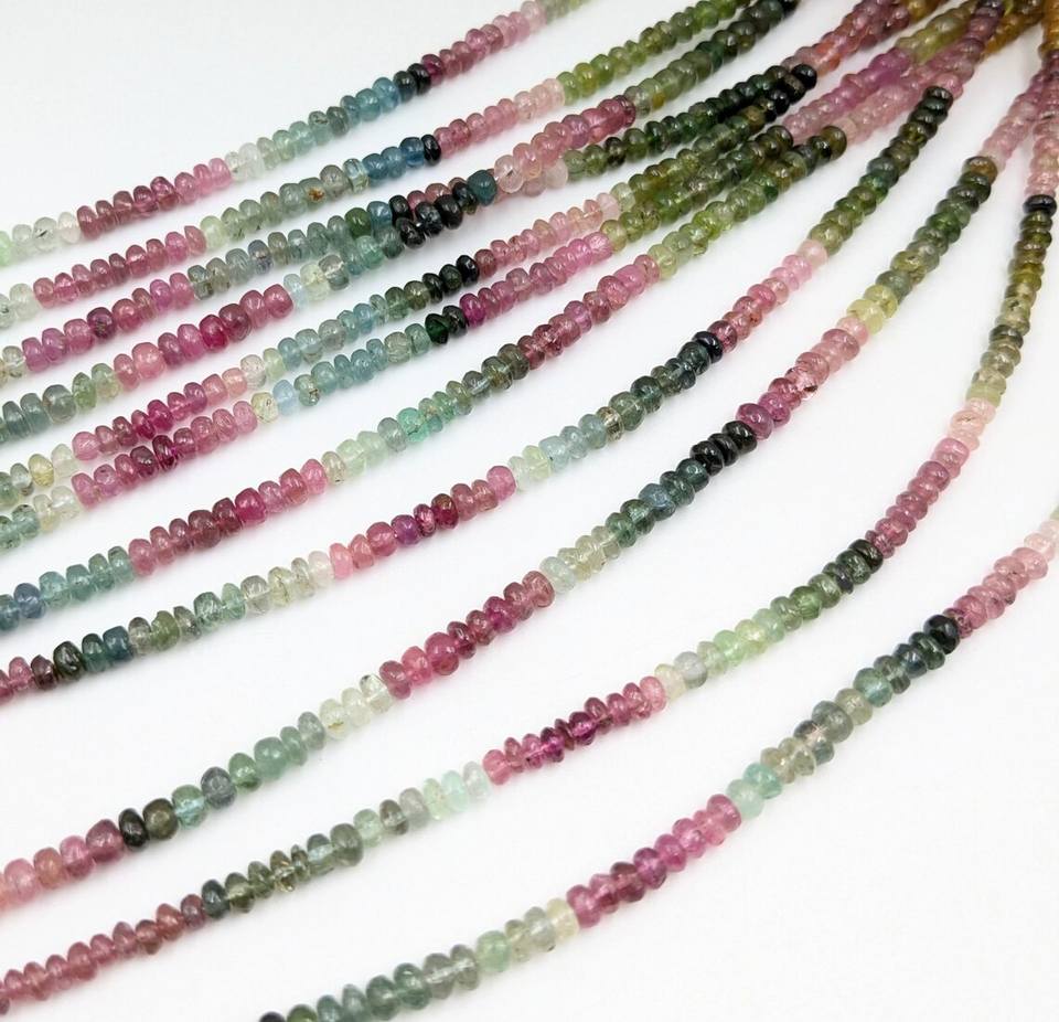 Cuentas de piedras preciosas de turmalina Natural de alta 100%, 4mm, multicolor, Rondelle, plata, Arco Iris, joyería, uso de Material de zafiro