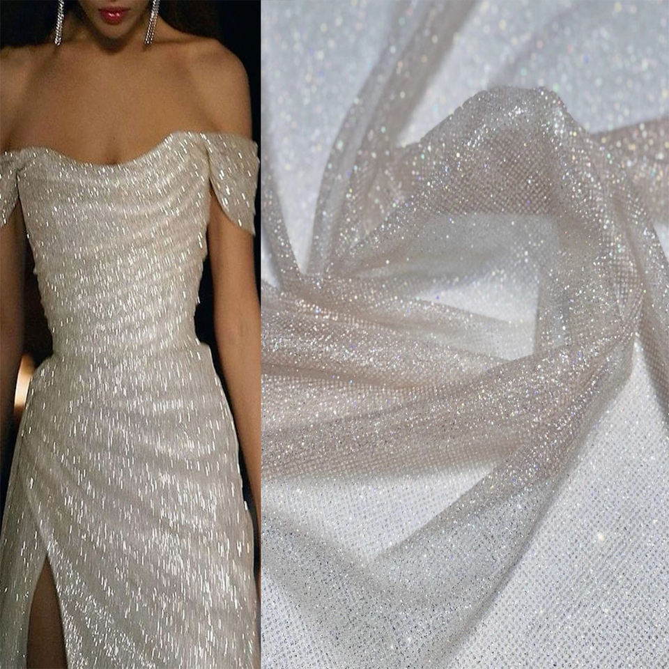 Tela de encaje con purpurina multicolor de brillo intenso, tela de tul con lentejuelas extra densas para vestido de fiesta o de noche