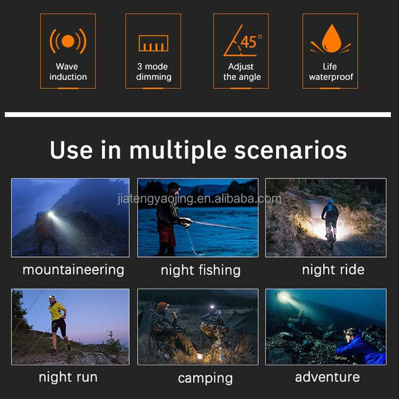 Linterna frontal LED multicolor recargable con sensor de movimiento, impermeable, portátil, con clip para la cabeza, para camping, pesca y actividades al aire libre.