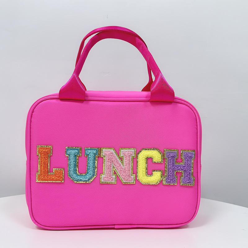 Bolsa de almuerzo de nailon multicolor para mujer, fiambrera aislada portátil con asa