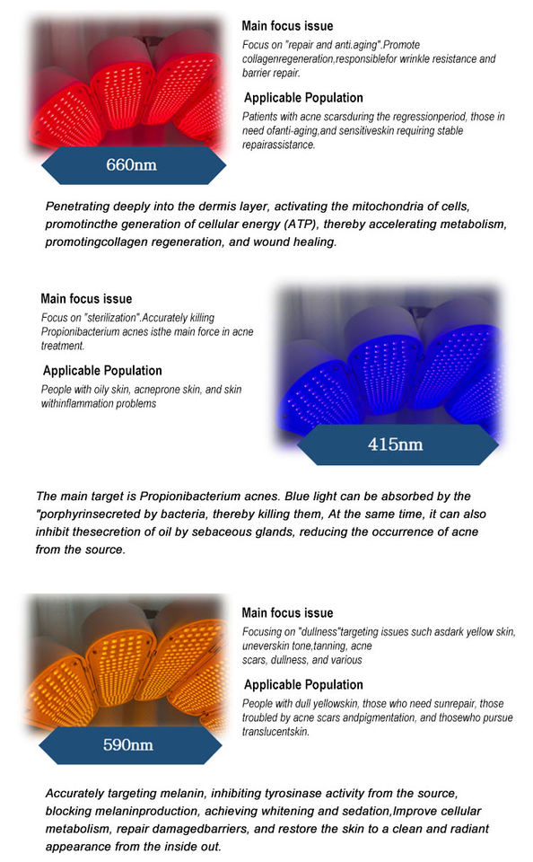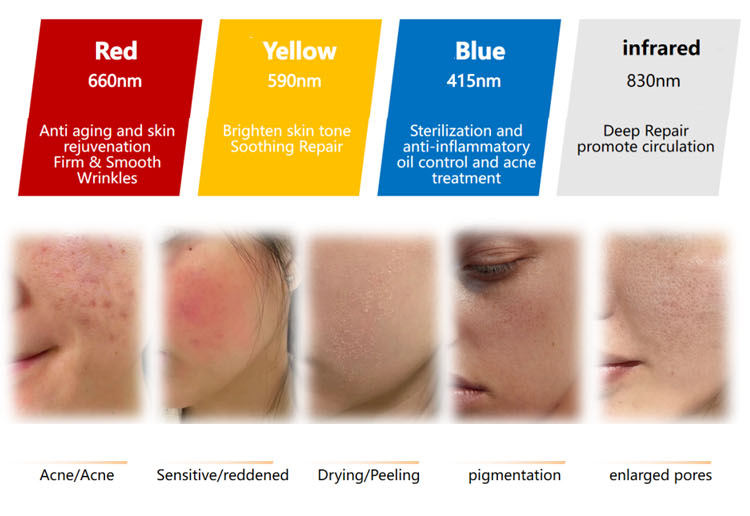 Máquina de belleza de terapia de luz LED roja y azul de múltiples efectos, cuatro colores, para reparación de la piel y líneas finas.