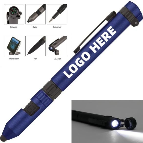 Pen, LED Light, Compass, Stylus, Phone Stand, Screwdriver