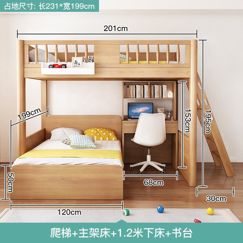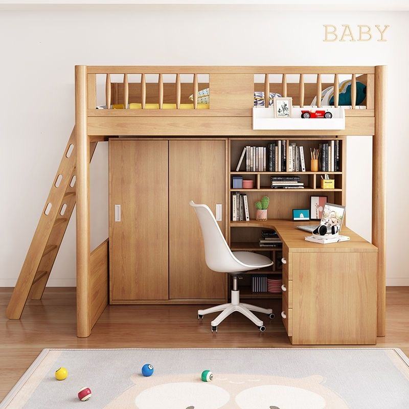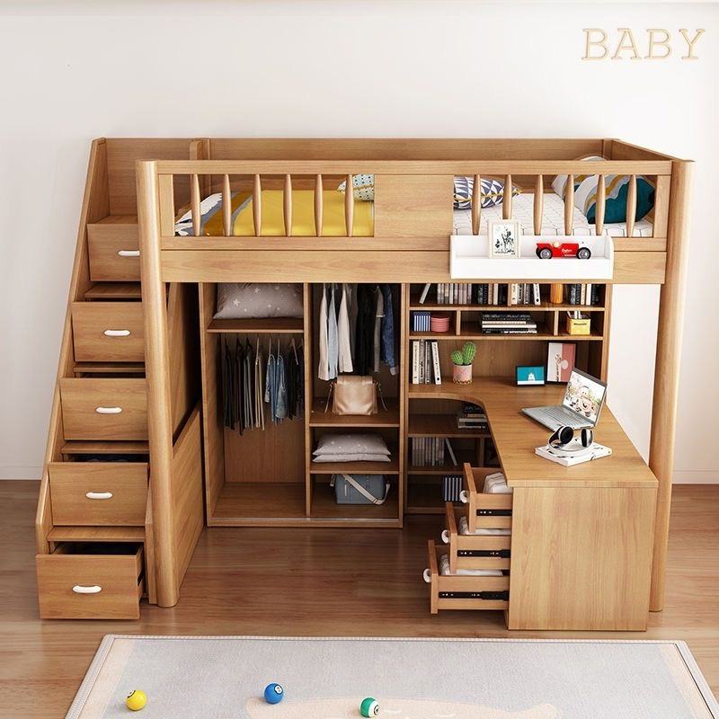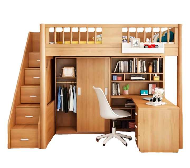 Litera Multifuncional con Armario Combinación de Cama Alta y Baja para Apartamento Pequeño Cama Infantil con Escritorio Debajo