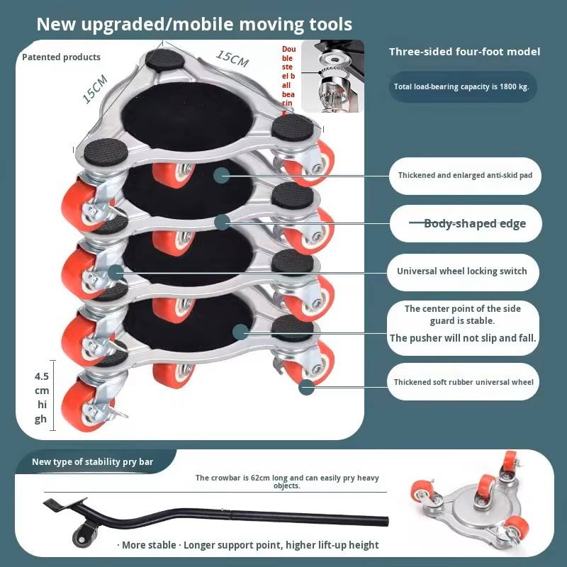 Herramienta Multifuncional para Mover Objetos Pesados con Ruedas Universales y Marco Triangular