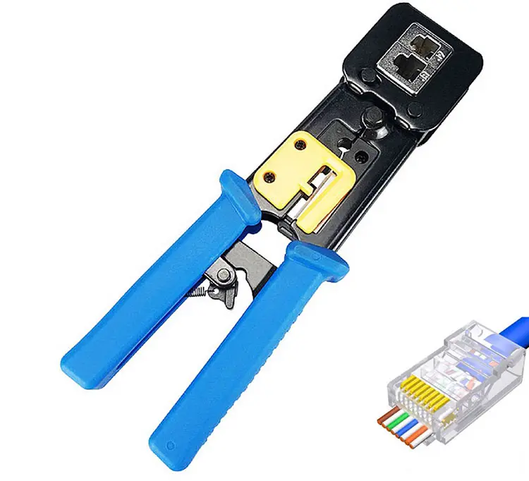 Alicates Multifunción para Cables de Red, Alicates de Compresión para Cabeza de Cristal Perforada 6P/8P, RJ45 para Uso con Cámara, Reforzados de Alta Velocidad
