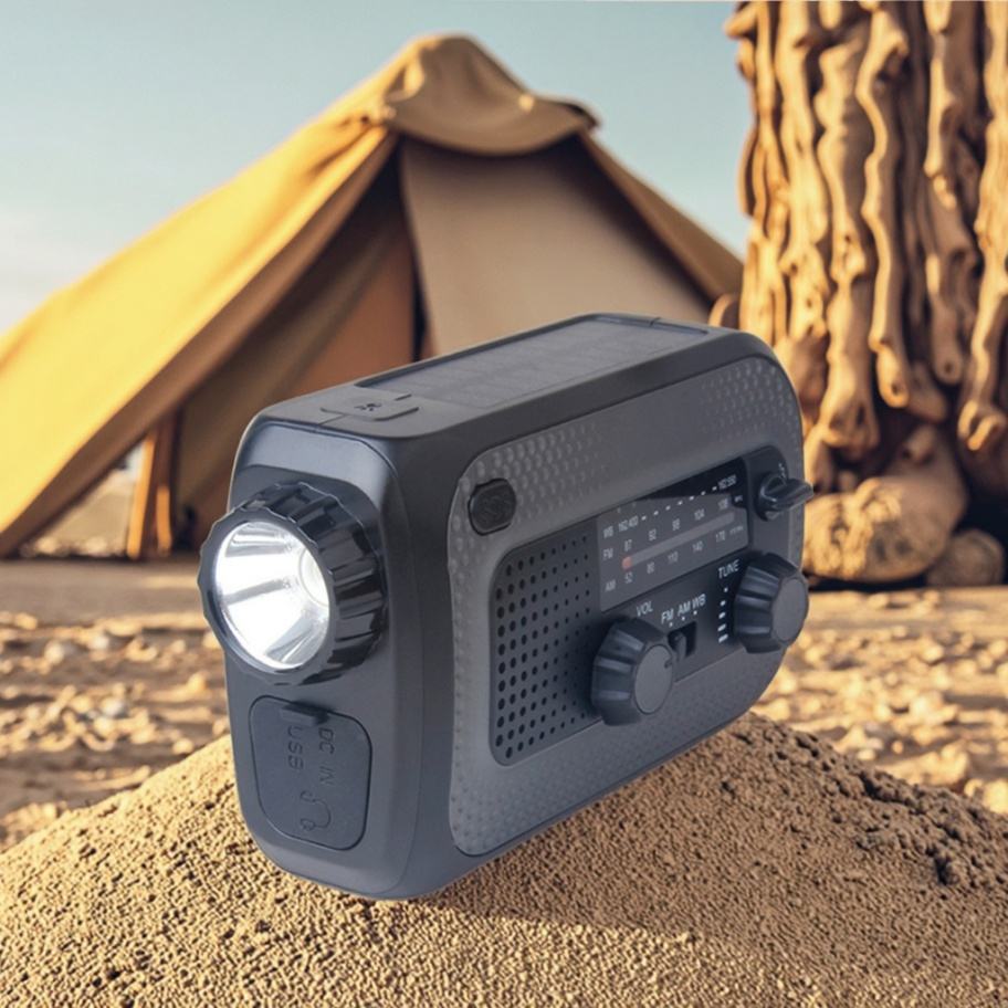 Radio de Emergencia Multifuncional para Exteriores, Linterna Manual, Cargador Solar NOAA, Banco de Energía