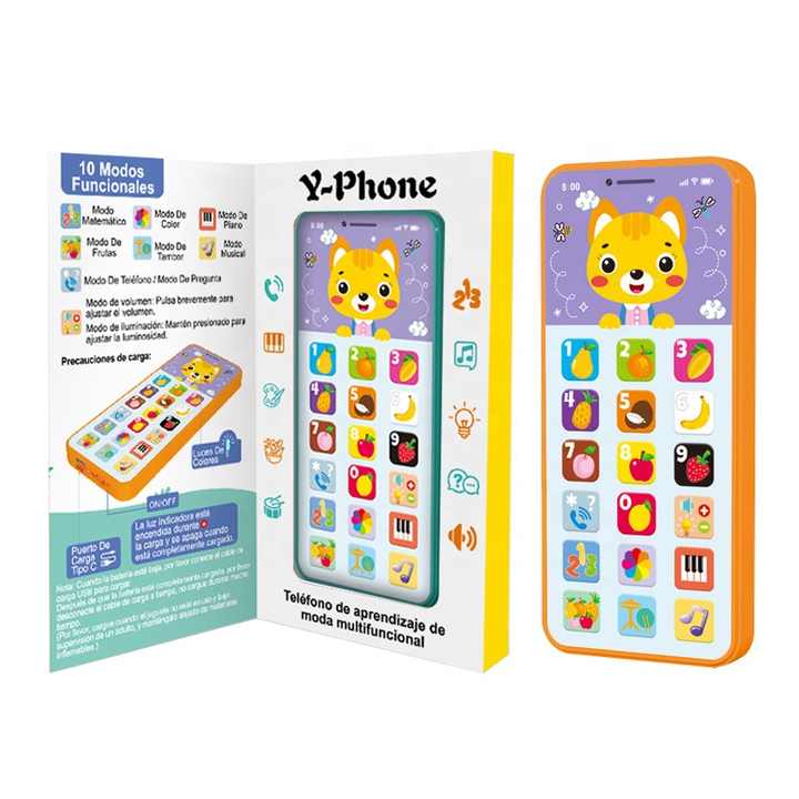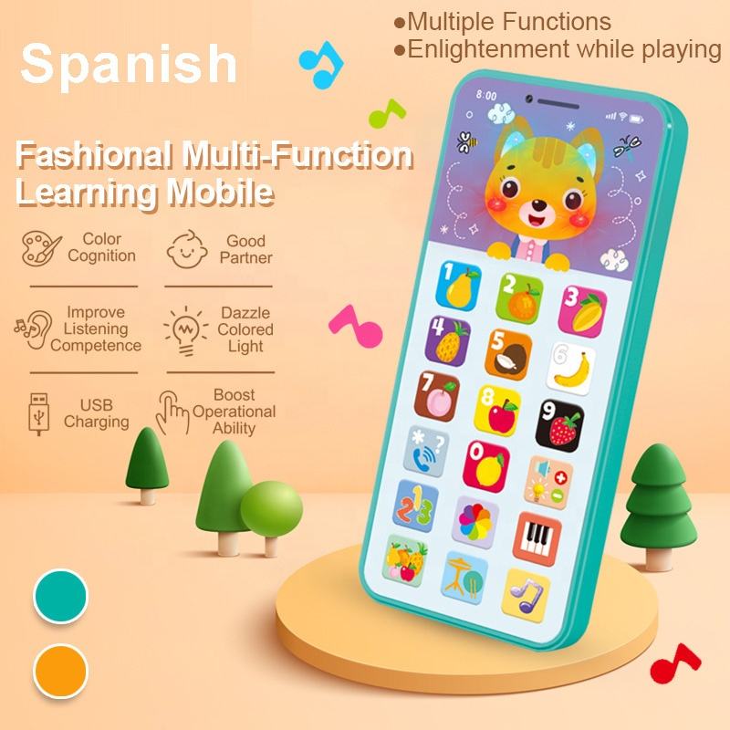 Juguete multifunción para teléfono inteligente para niños pequeños, aprendizaje de español, móvil, educativo temprano, recargable, electrónico, aprendizaje, juguete para teléfono móvil