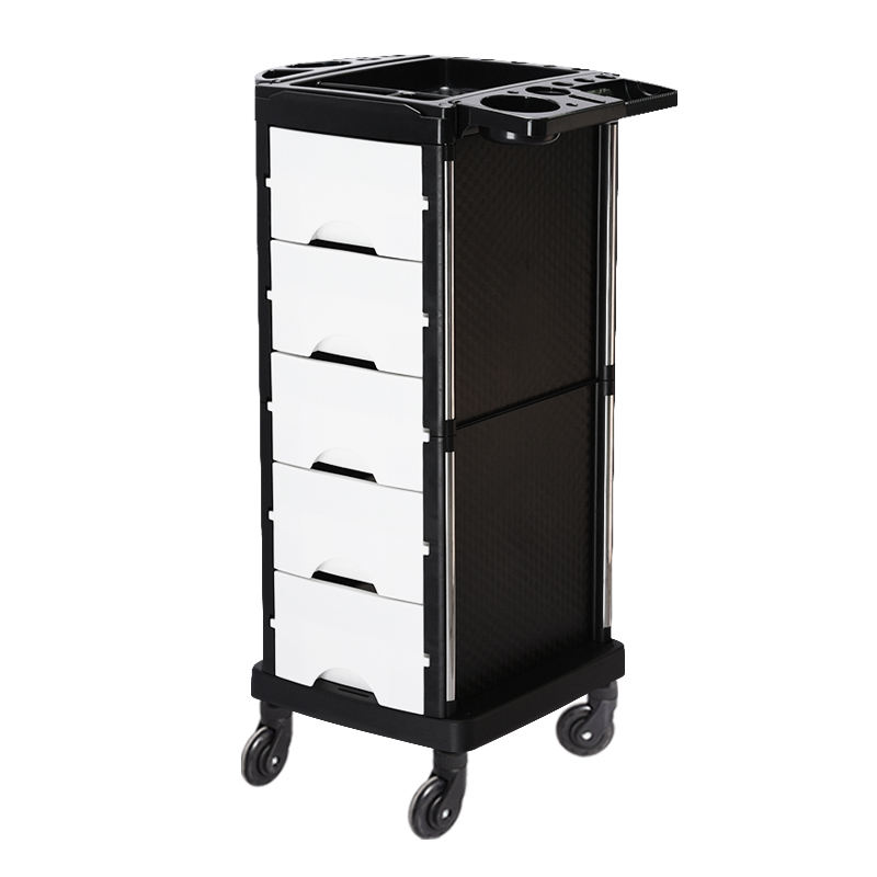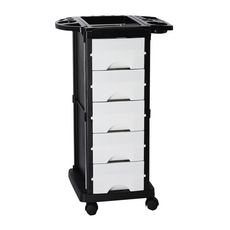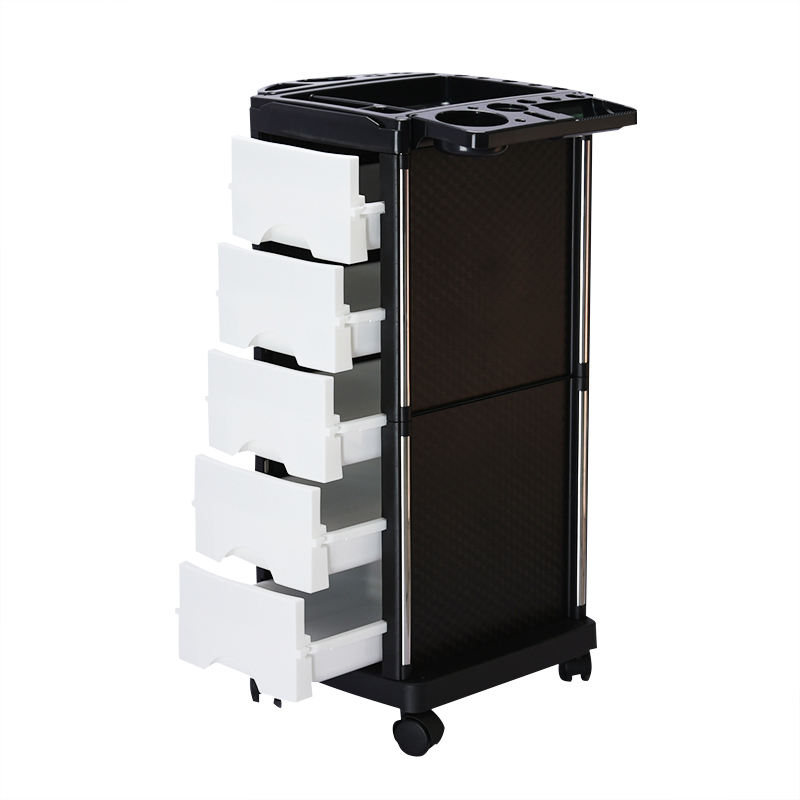 Carro auxiliar de bandeja superior multifunción salón con soporte para secador de pelo Carro de plástico ampliamente utilizado de gran capacidad con 5 cajones