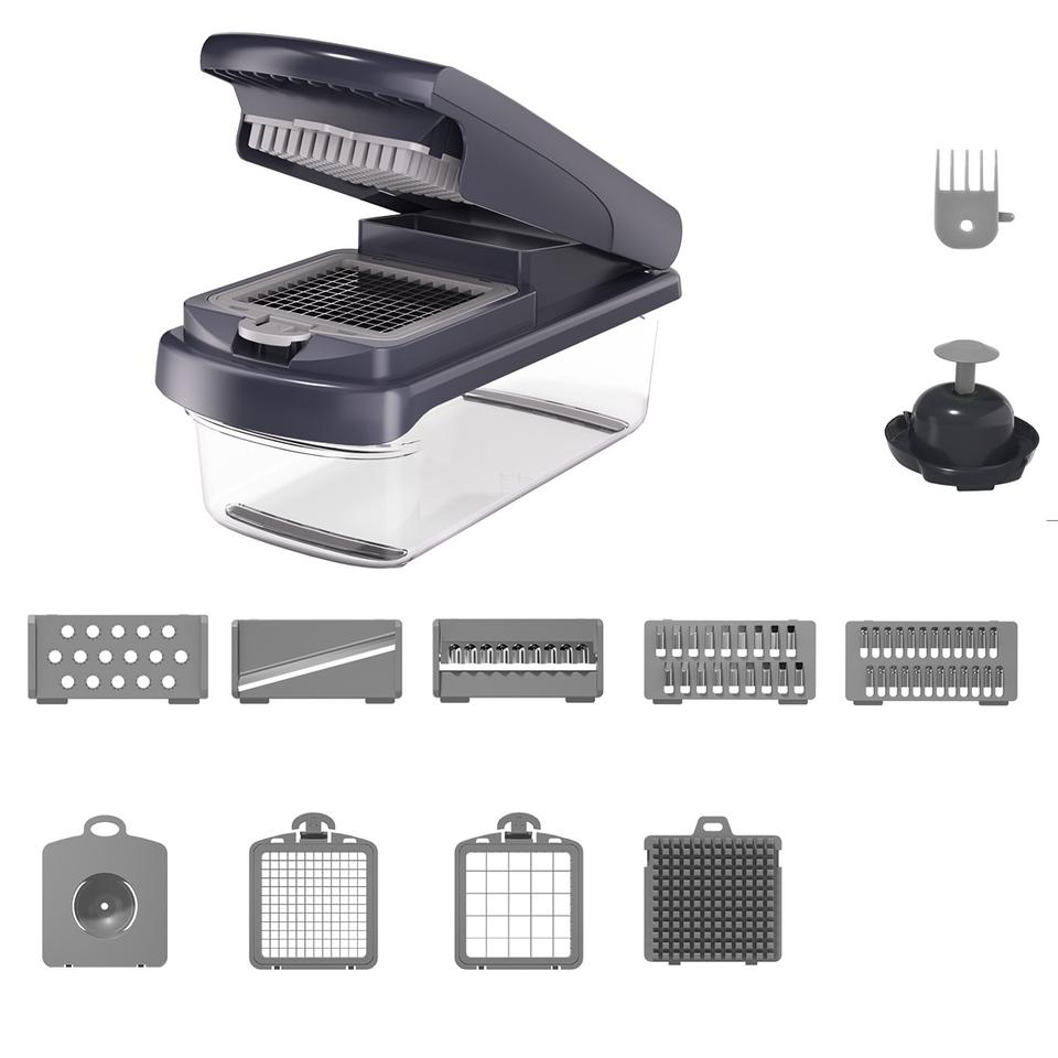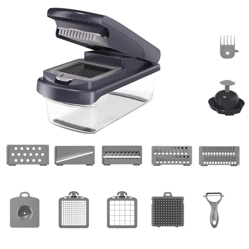 Cortador de Verduras Multifuncional de 12 Piezas, Rebanador de Frutas, Verduras y Cebollas con Contenedor, Manual