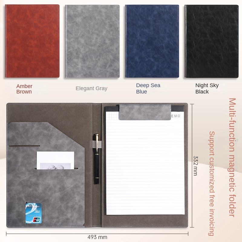 Carpeta Multifuncional A4 de Cuero Cortex con Logotipo Impreso, Diseño de Férula, Libro de Firmas para Gerentes de Ventas