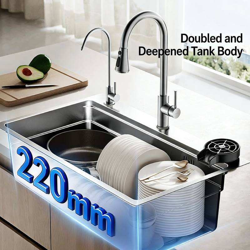 Fregadero de cocina multifuncional de acero inoxidable engrosado, de un solo tanque grande, silencioso, a prueba de olores, para instalar bajo encimera.