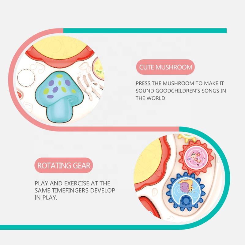 Función: mesa de actividades de aprendizaje para bebés:Aprendizaje divertido, piano, batería, engranaje, historia, canción, rueda giratoria, luz, música