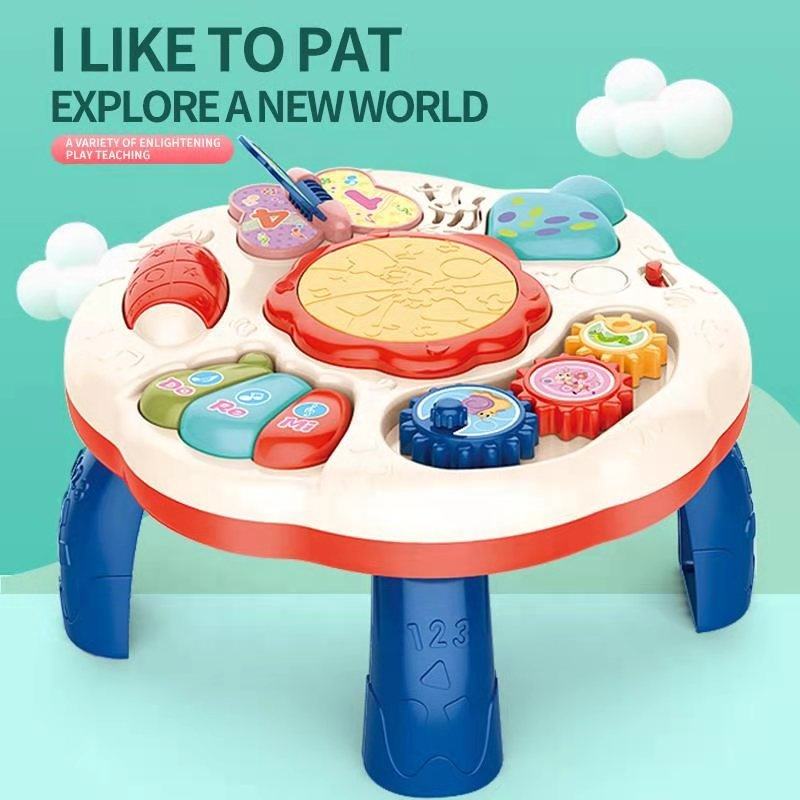Mesa de actividades multifuncional musical para bebés, juguete de escritorio de estudio