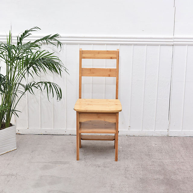 Escalera Multifuncional de Bambú para Biblioteca con Silla de Madera