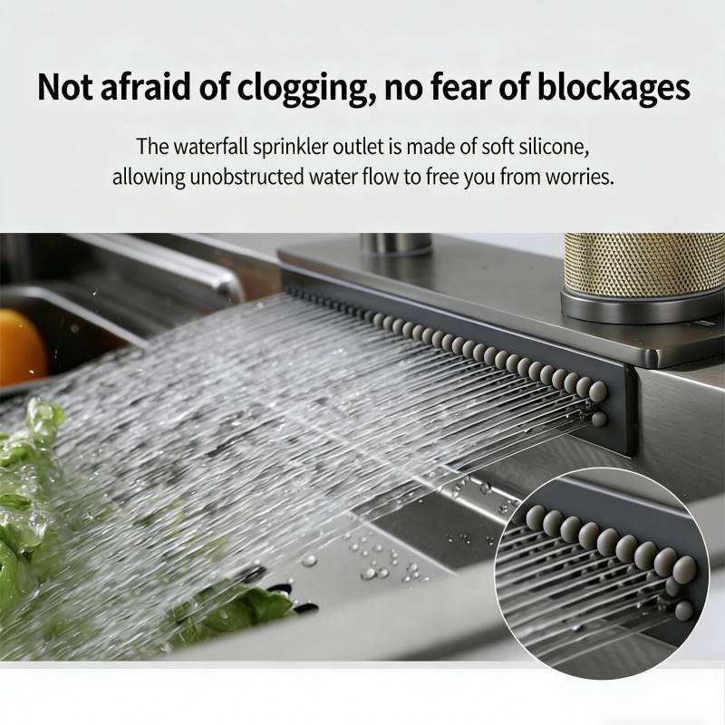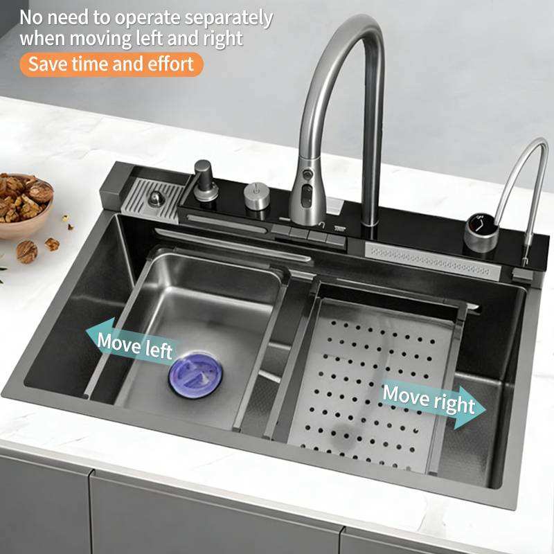 Grifo extraíble multifuncional de acero inoxidable con pantalla digital, efecto lluvia y cascada integrados para fregadero de cocina