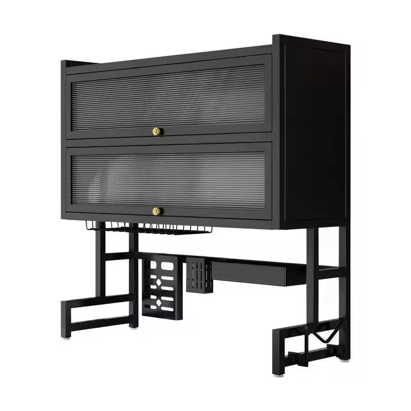 Escurridor de Platos y Tazones de Cocina Moderno de Doble Nivel y Multicapa, No Plegable, de Acero al Carbono, Multifuncional