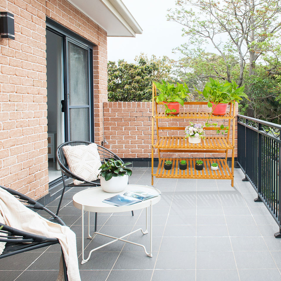 Soporte multicapa para flores, estante de almacenamiento para macetas, escalera de exhibición de bambú, estante plegable para macetas de 3 niveles