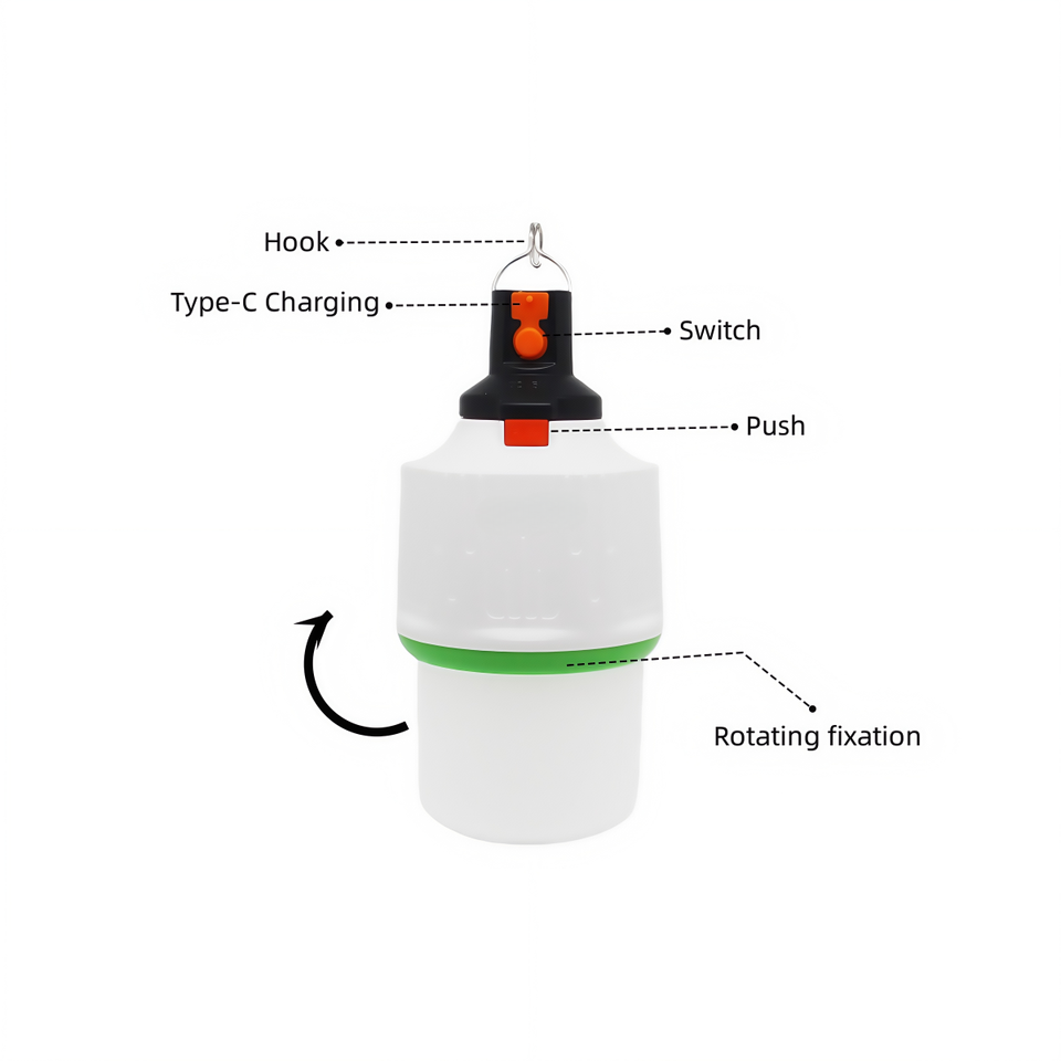 Luz LED de Camping de potencia múltiple para escalar, ranuras de batería duales y carga, uso de taller táctico colgante portátil