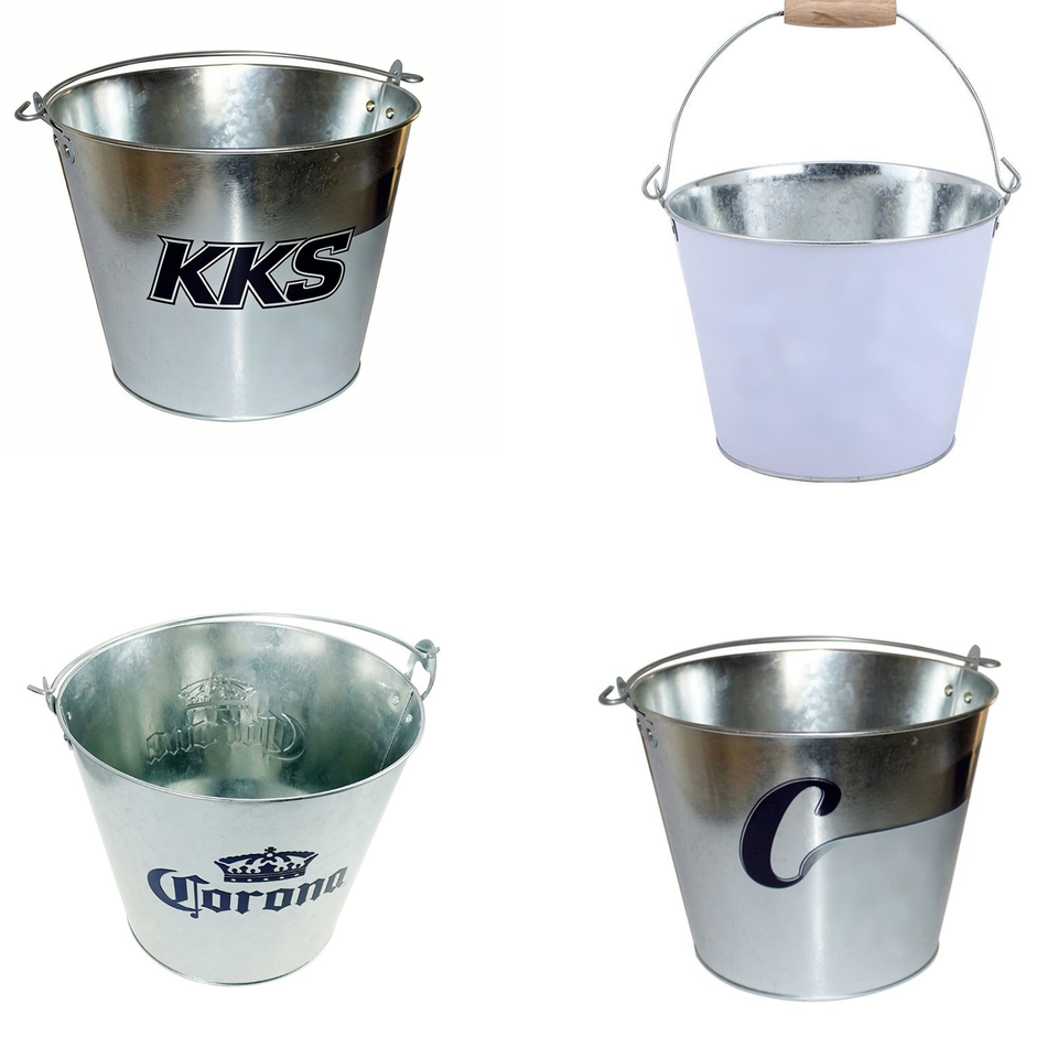 Cubetas de Hielo Metálicas Personalizadas Multicapacidad de 5L, 8L y 10L, Color Blanco y Azul, con Logotipo Personalizado, para la Industria Hotelera