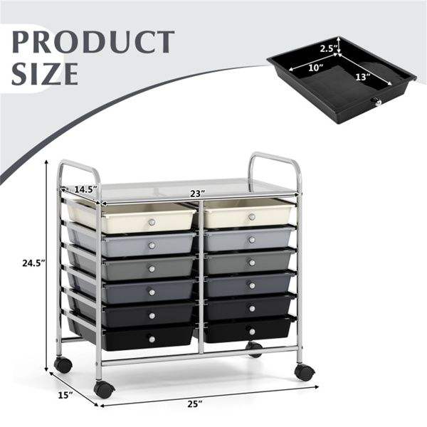 Carrito de Almacenamiento Rodante Multicolor de 12 Cajones, 2 Filas y 10 Niveles con 4 Ruedas (2 con Frenos) Gris, para Organización y Uso en Oficina en Casa