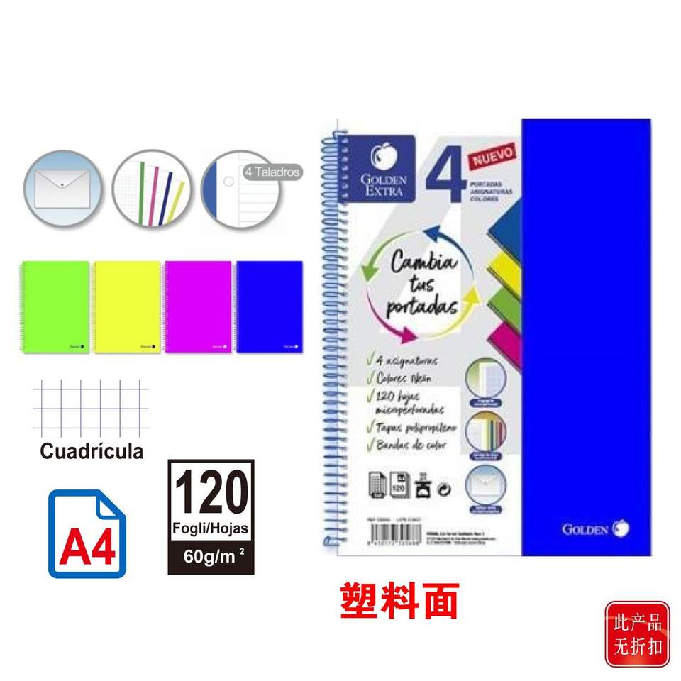 Multicolor 120 hojas A4 cuaderno cubierta suave Linda hoja de encuadernación en espiral para estudiantes Oficina escritura 4 cubiertas PP diario