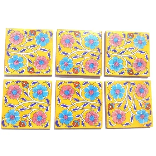 Azulejos de cerámica hechos a mano multicolor de 4x4 ''Paquete de 6 acentos decorativos de pared de cerámica azul