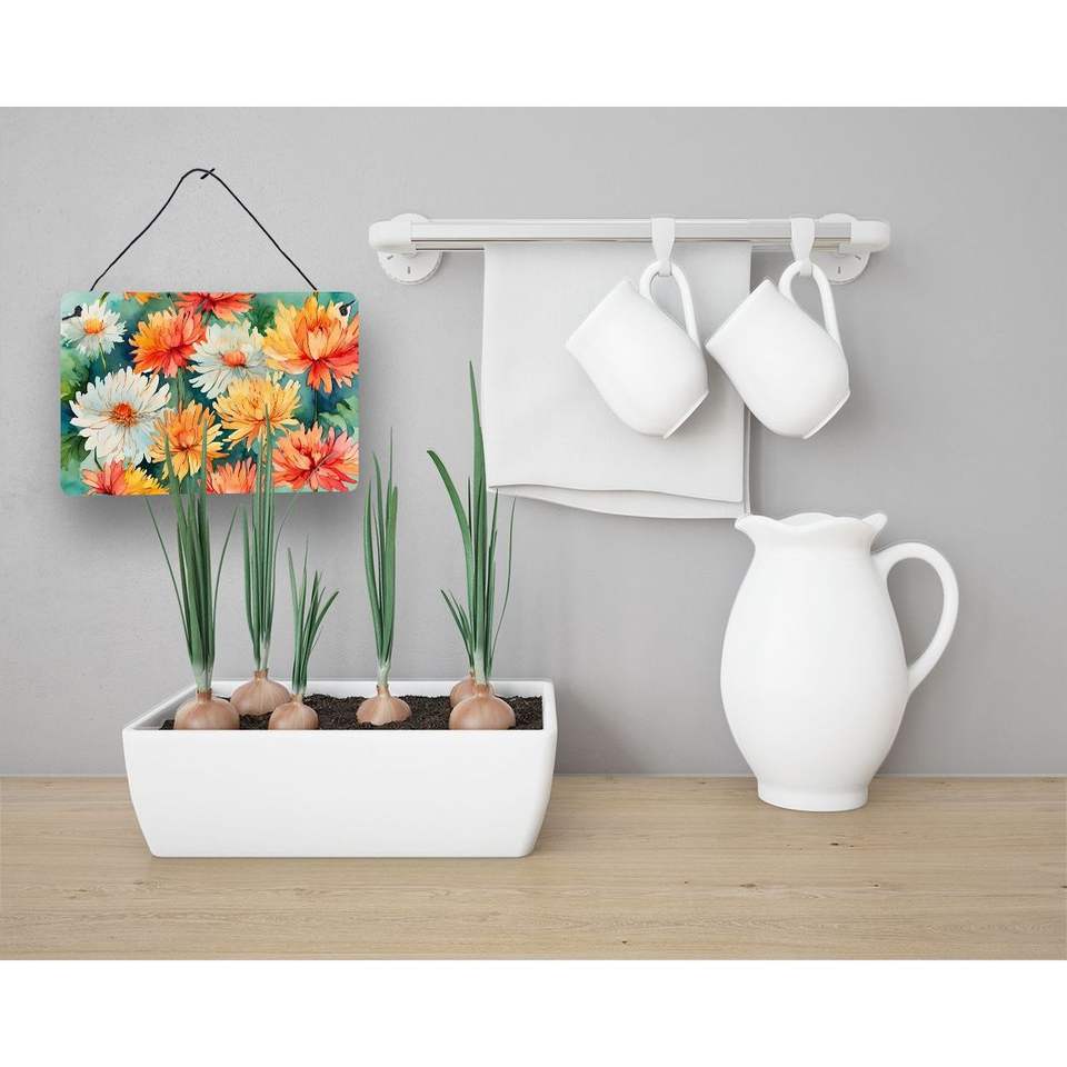 Letrero de Metal de aluminio Multicolor nueva acuarela crisantemos puerta colgante para cocina Bar baño decoración del hogar 8HX12W