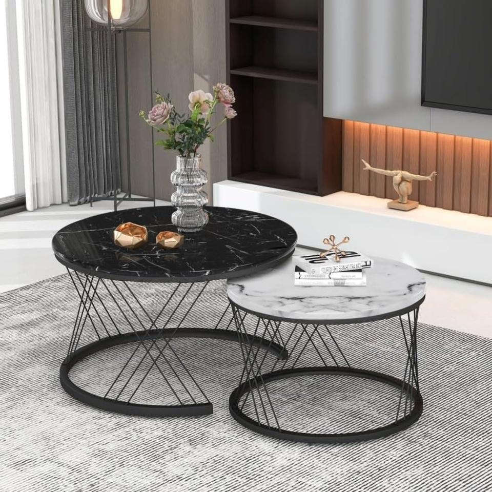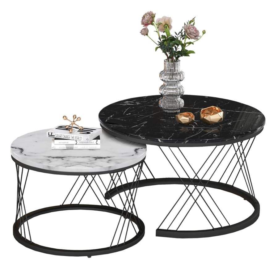 Juego de Mesa de Centro De-Artico Moderno, Duradero y Ecológico, Disponible en Varios Colores, 2 Mesas Apilables con Aspecto de Mármol para Sala de Estar o Dormitorio