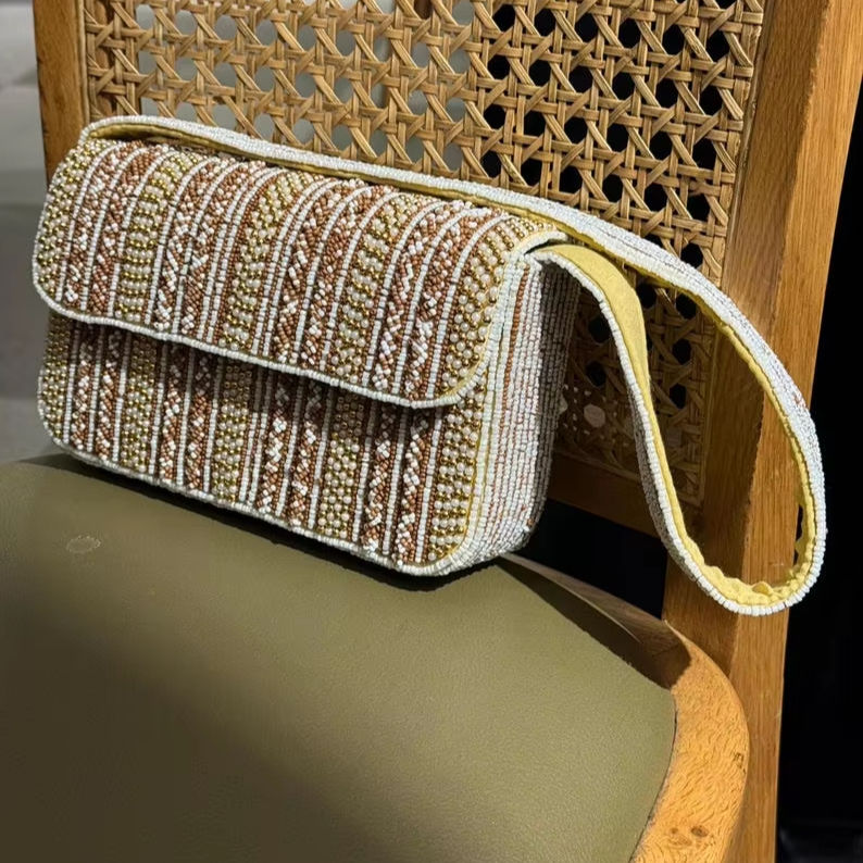Bolso con cuentas multicolor con asa, bolso de mano, bolso de mano informal, artesanía india, hecho a mano, bolso Baguette,