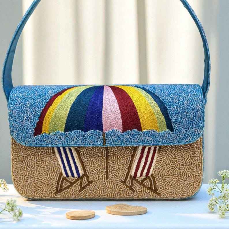 Bolso con cuentas multicolor con asa, bolso de mano, bolso de mano informal, artesanía india, hecho a mano, bolso Baguette,