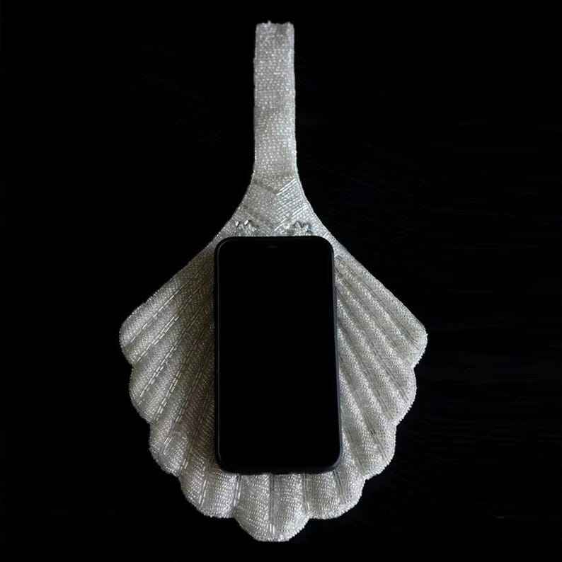Bolso de Mano Informal con Cuentas de Vidrio Multicolores y Asa, Bolso Baguette Hecho a Mano en India