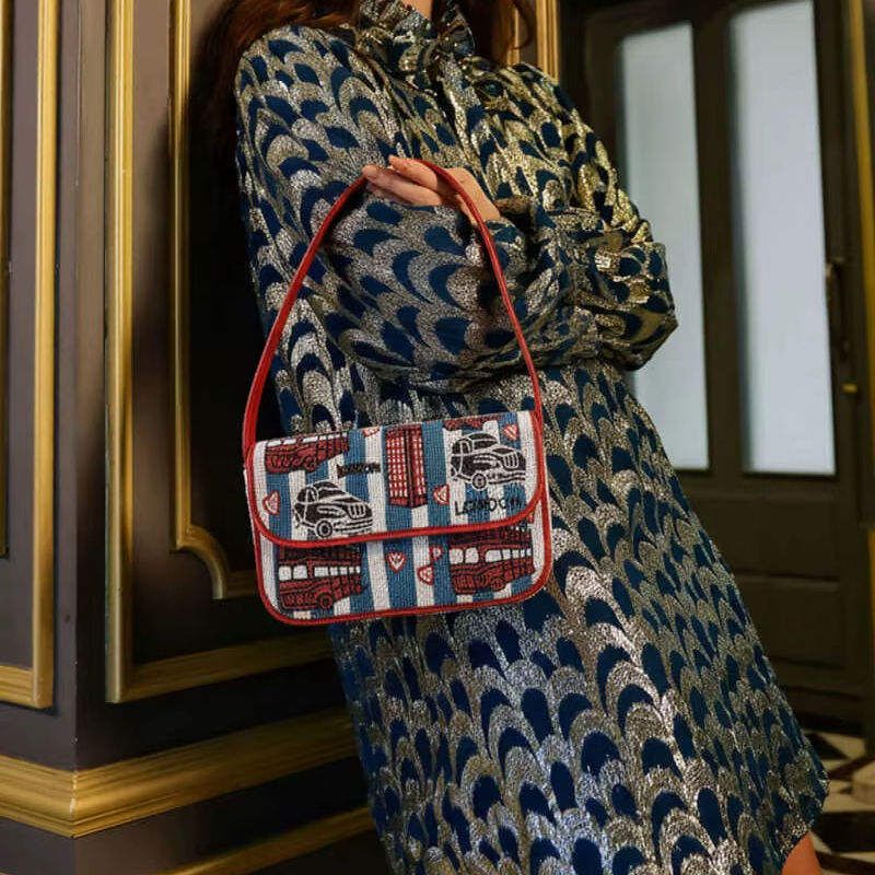 Bolso multicolor con cuentas y asa, bolso de mano, bolso informal, artesanía india, hecho a mano, bolso baguette