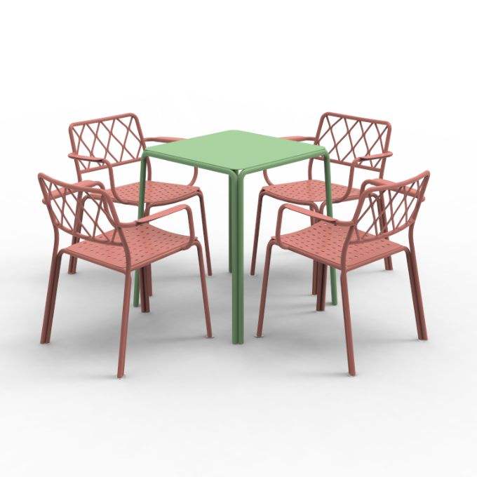 Juego de Mesa de Comedor de Aluminio Extruido Multicolor y Cómodo, con 4 Sillas con Brazos, Apilable, Ligero, Muebles de Restaurante Comerciales