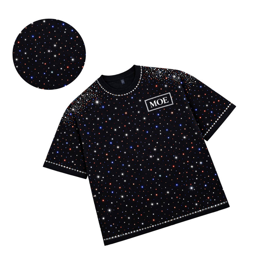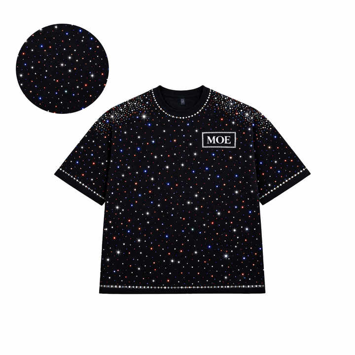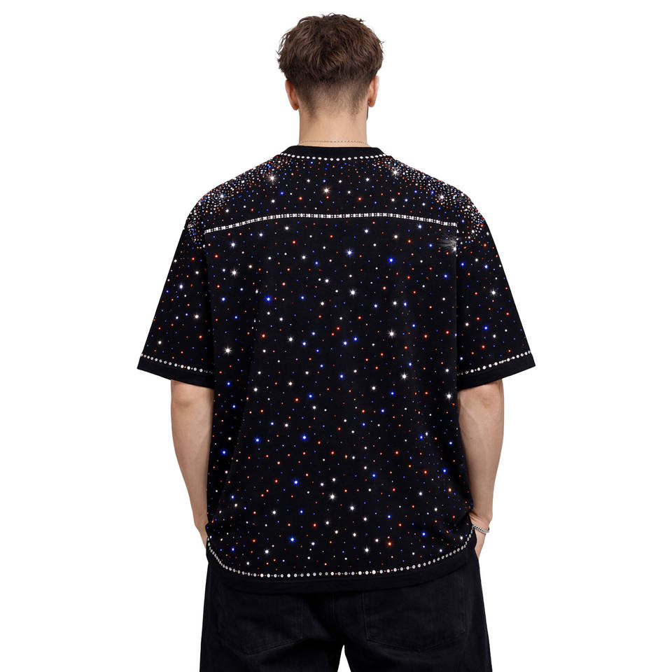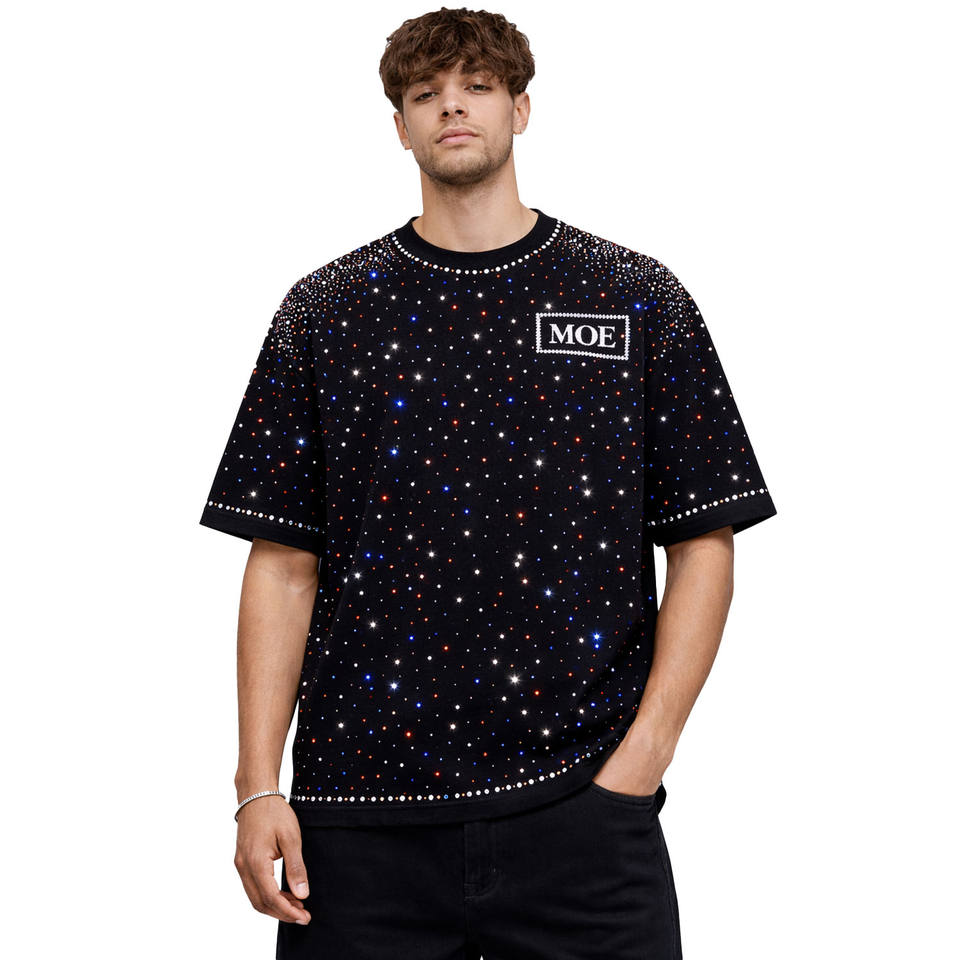 Camisetas multicolor personalizadas con pedrería, de algodón grueso, corte oversize, estilo streetwear, OEM, para hombre, al por mayor.
